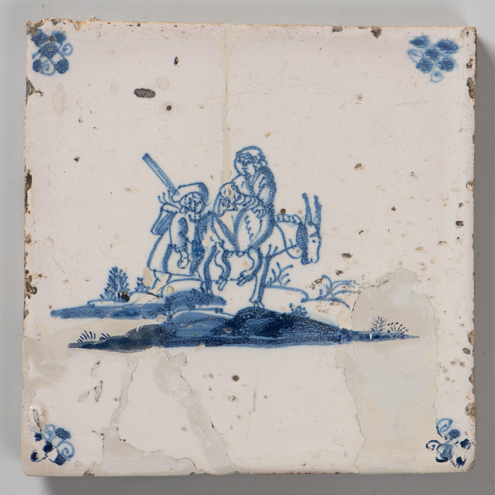 tegel van keramiek met tinglazuur, voorstellende: De...