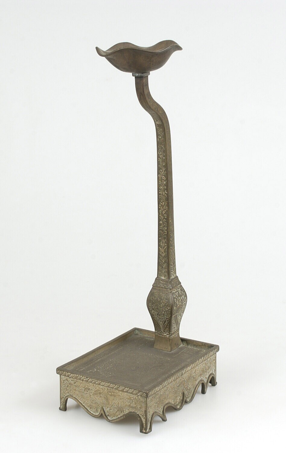 Vierpits olielamp van messing