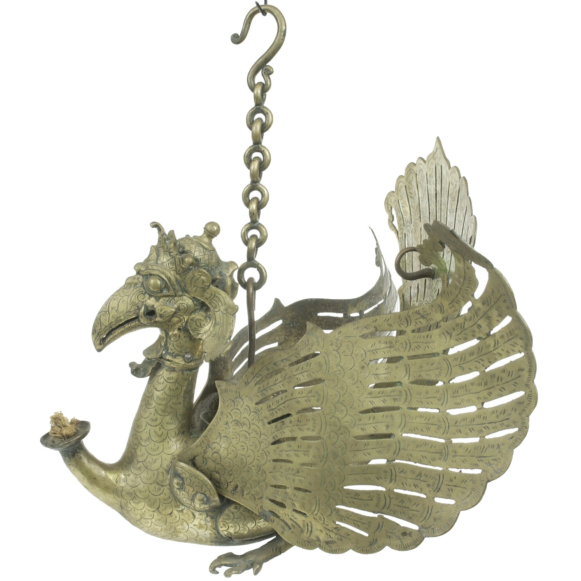 Messingen wajanglamp in de vorm van een gekroonde Ga...