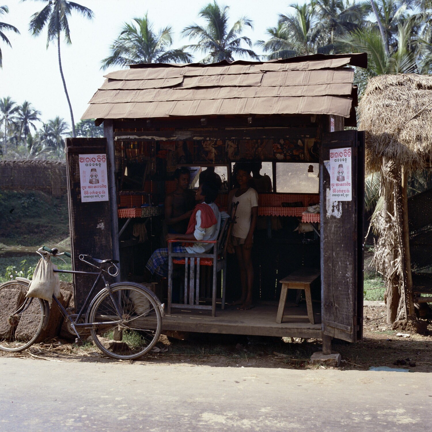 Een kapsalon langs de kant van de weg tussen Bhubane...