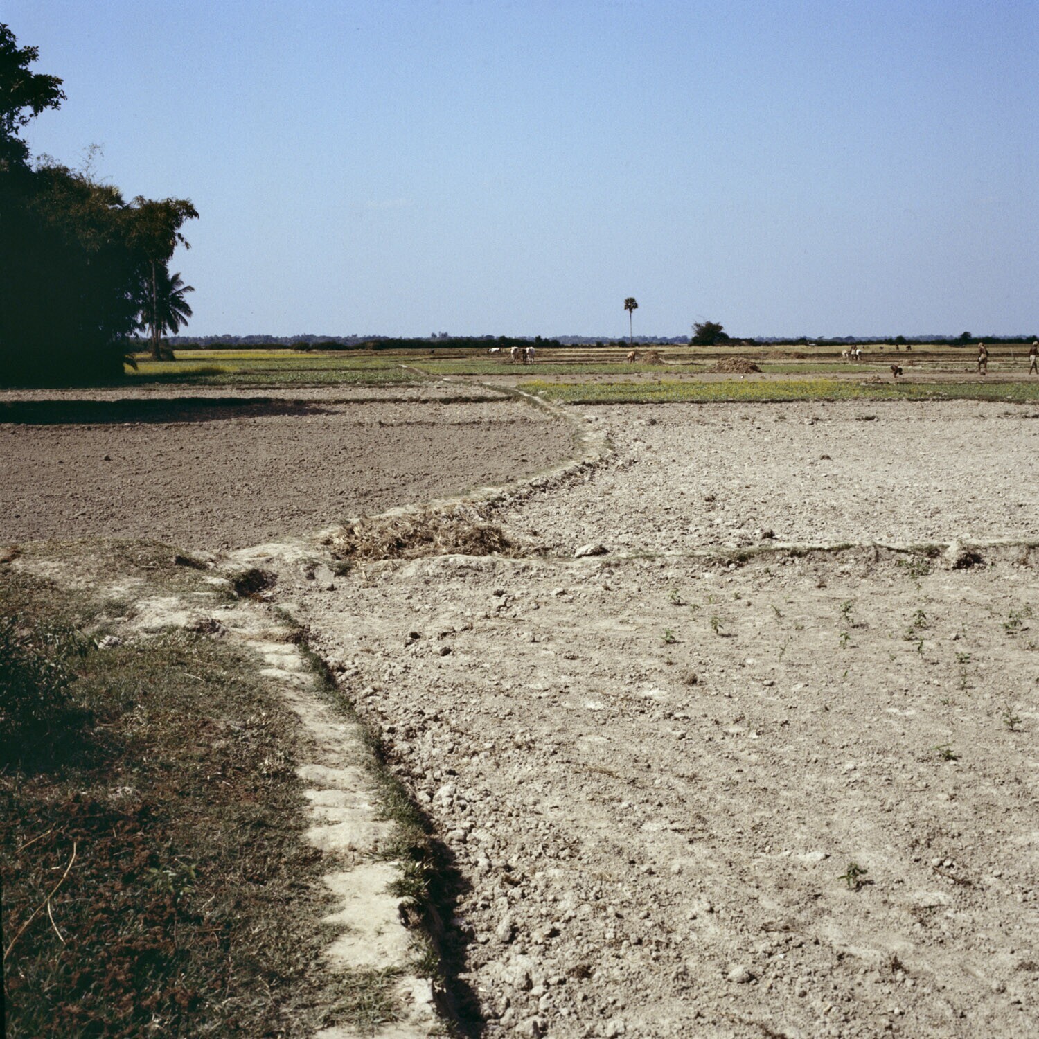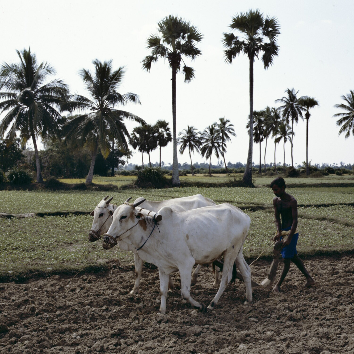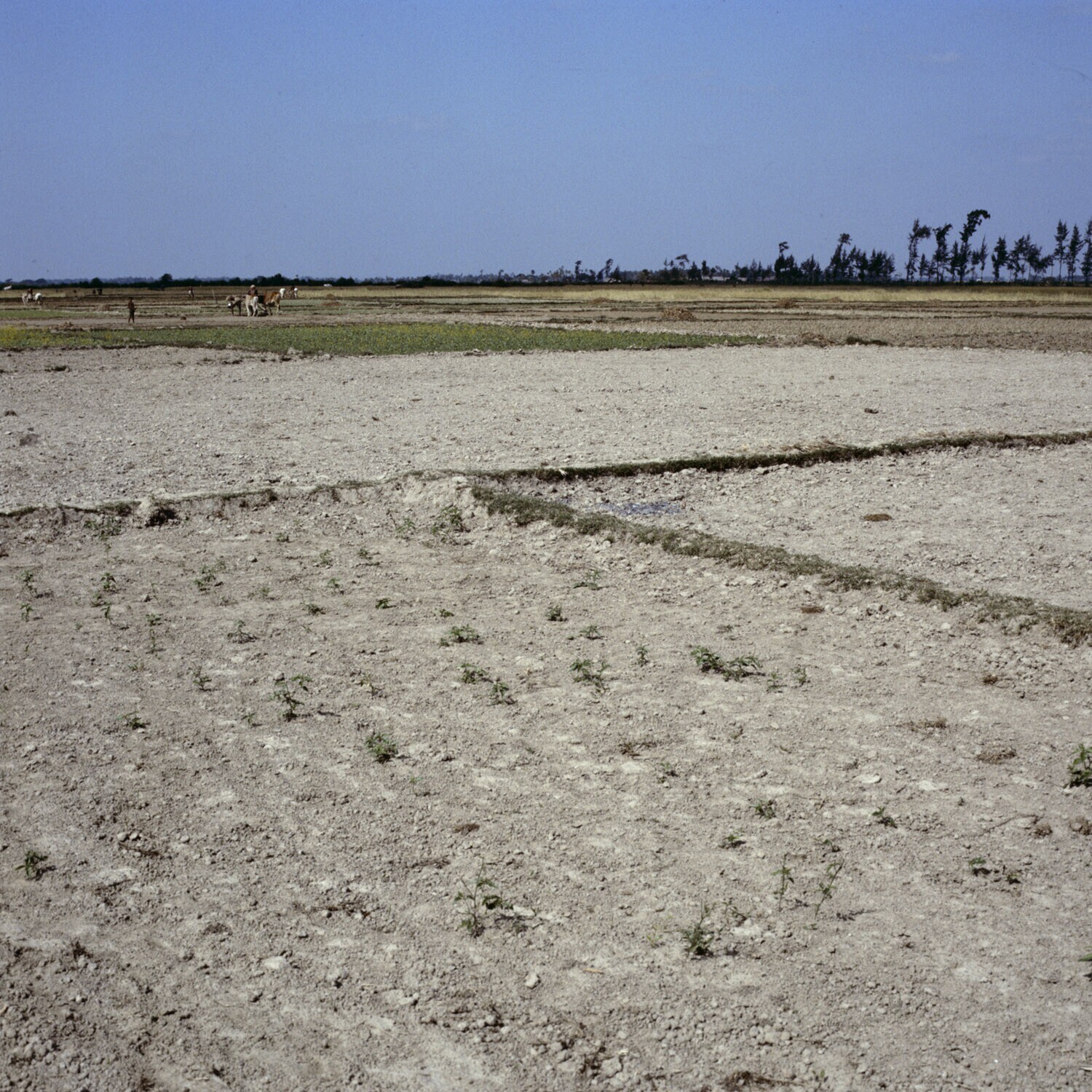 Het ploegen, met behulp van koeien, van een afgewerk...