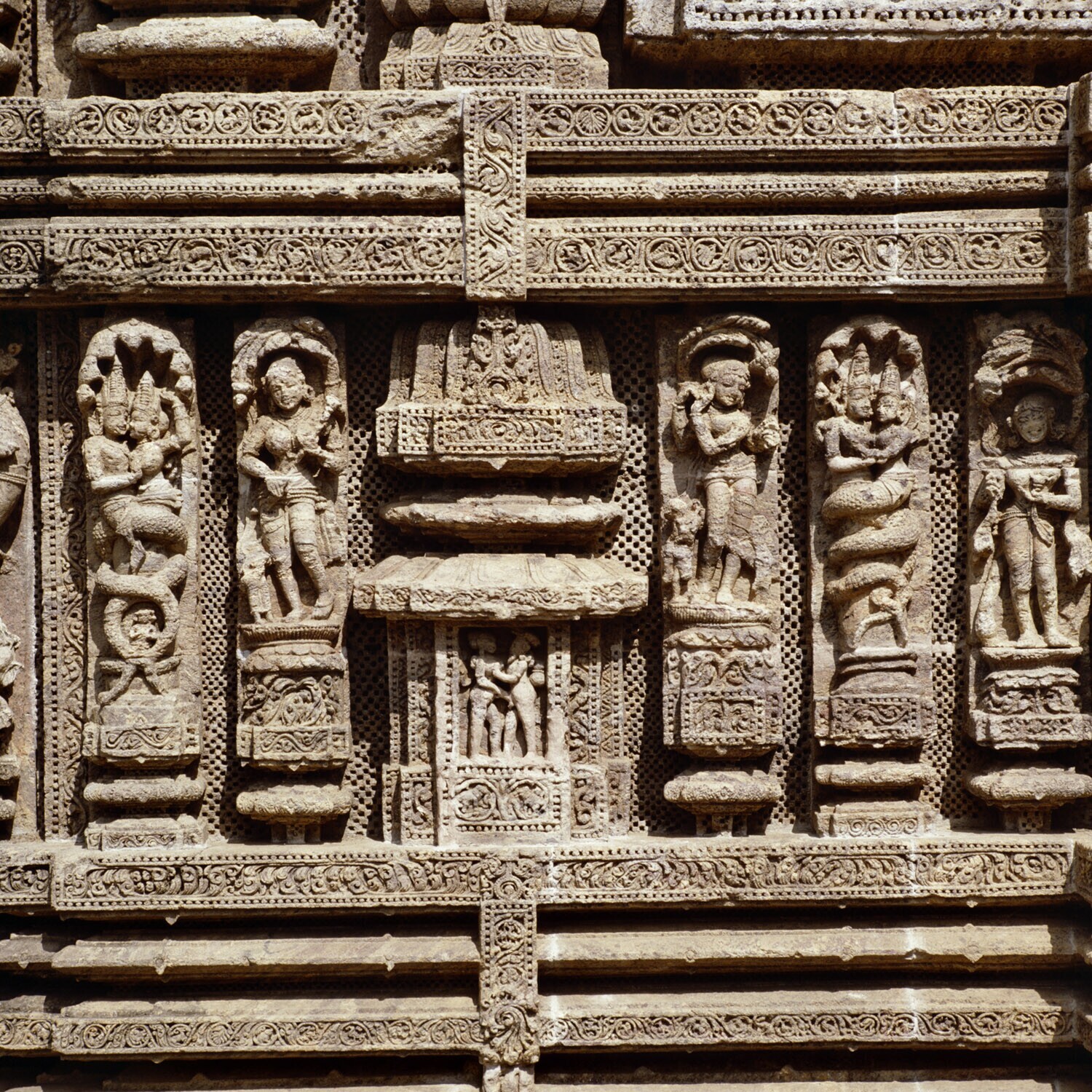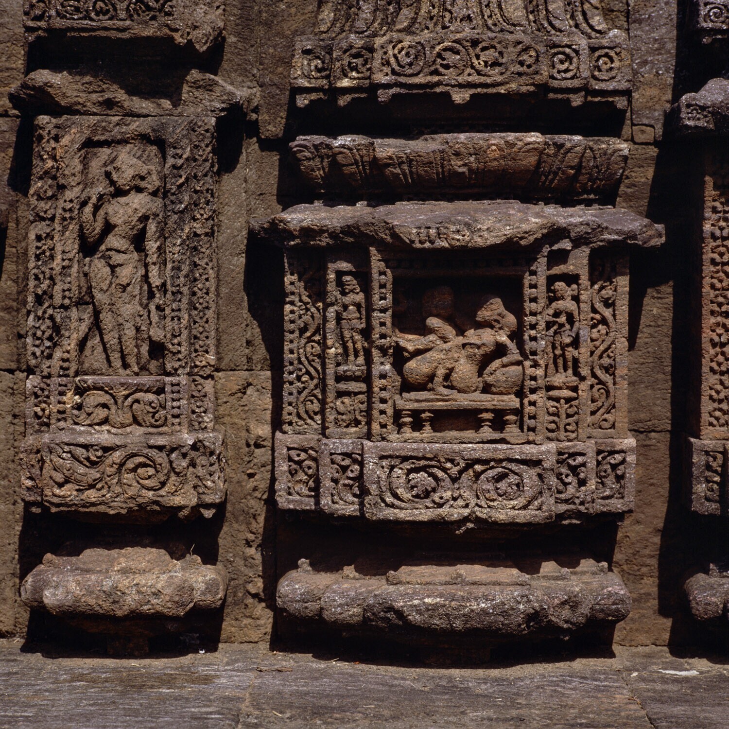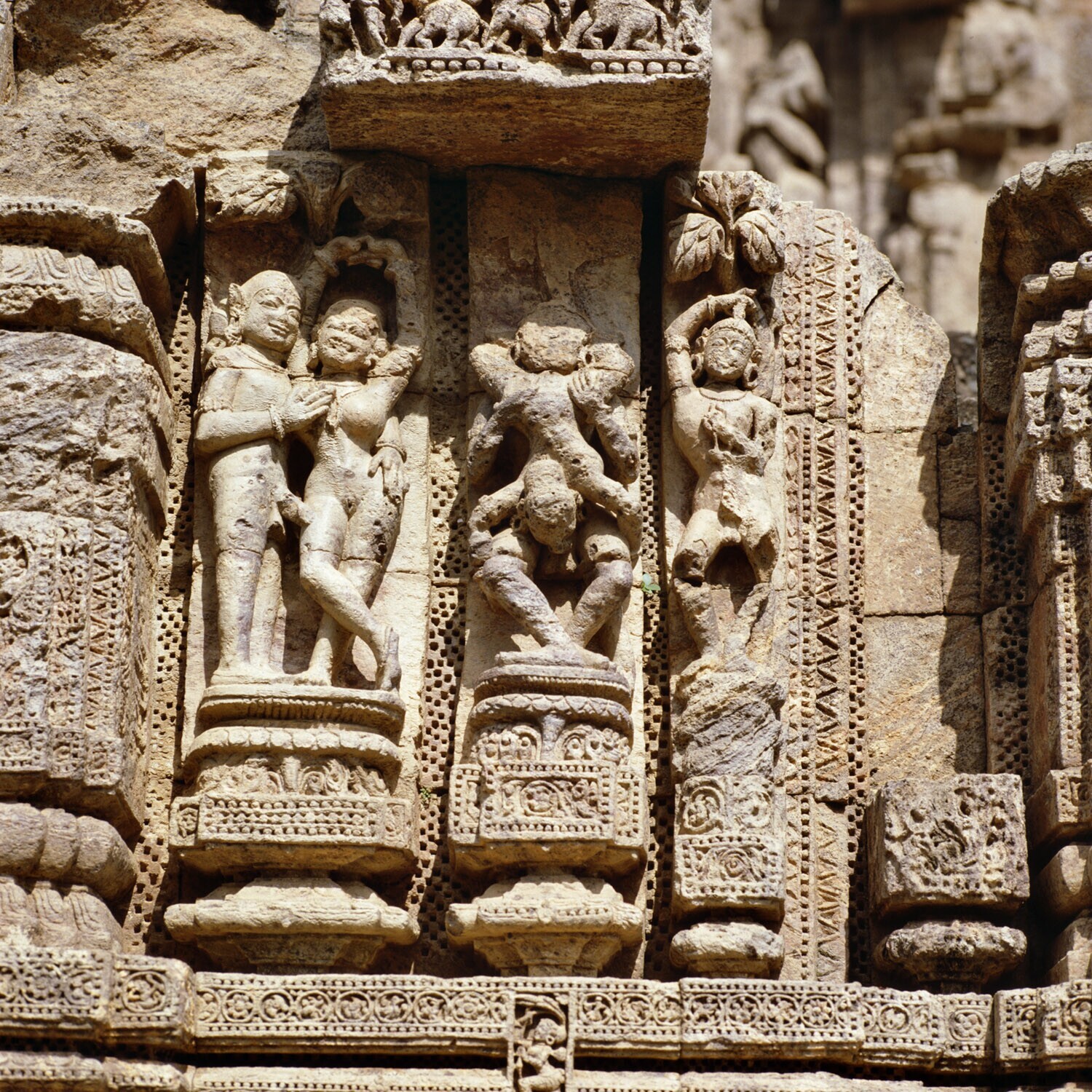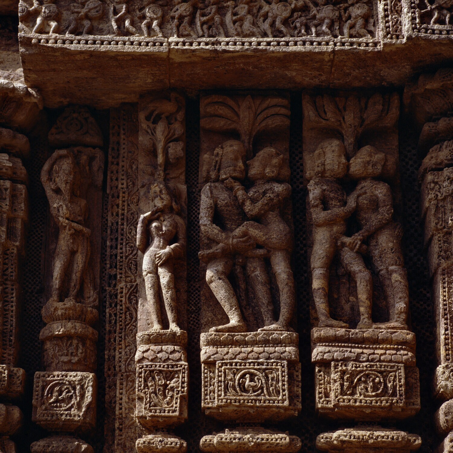 Details van de zonnetempel van Konarak met erotische...