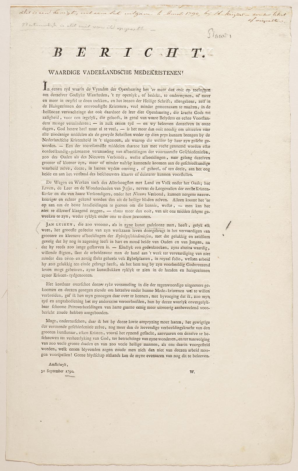 Bericht, Naamlyst der geschiedenissen van het oude t...