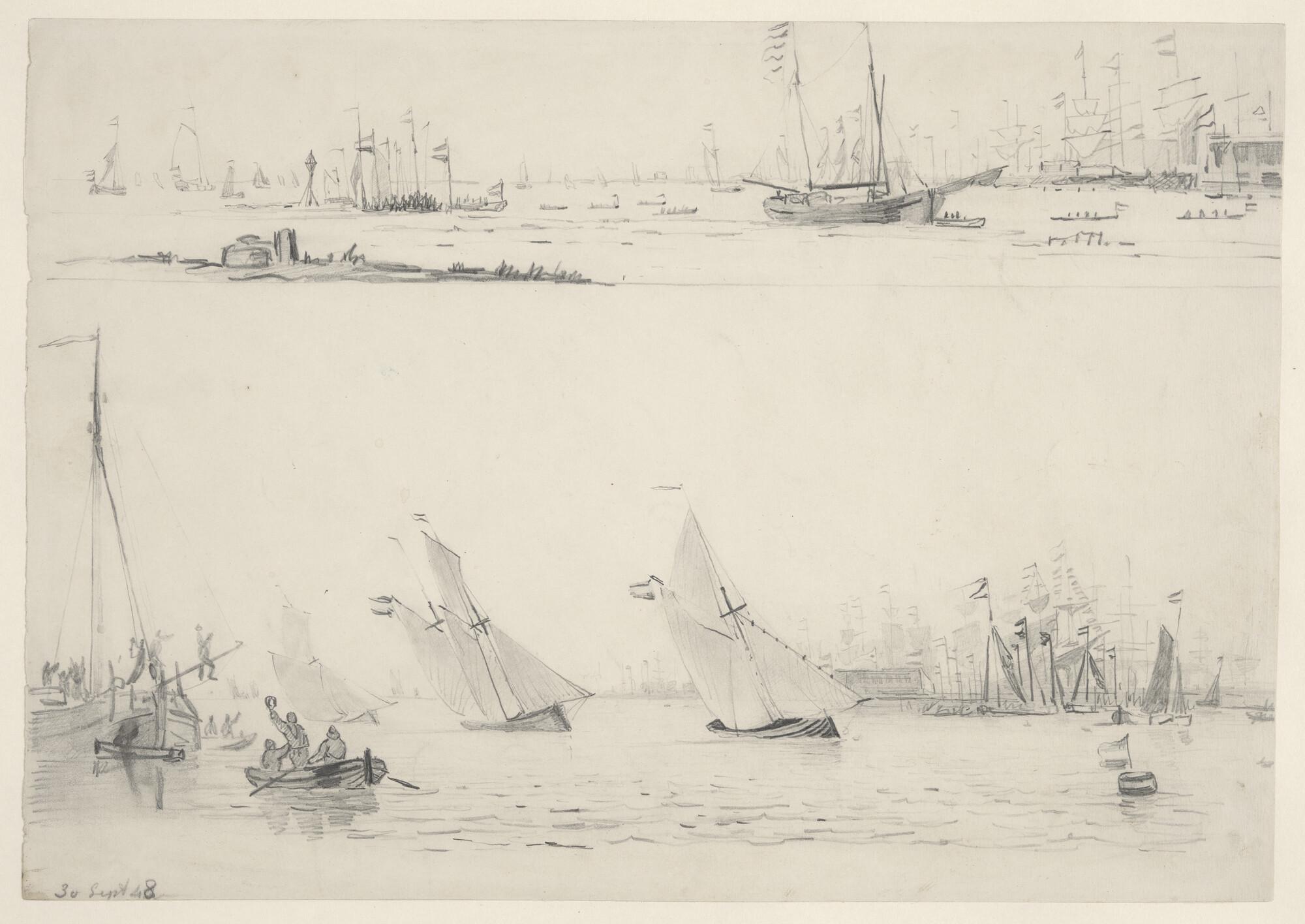 Zeilwedstrijd op het IJ, 30 september 1848, twee afb...