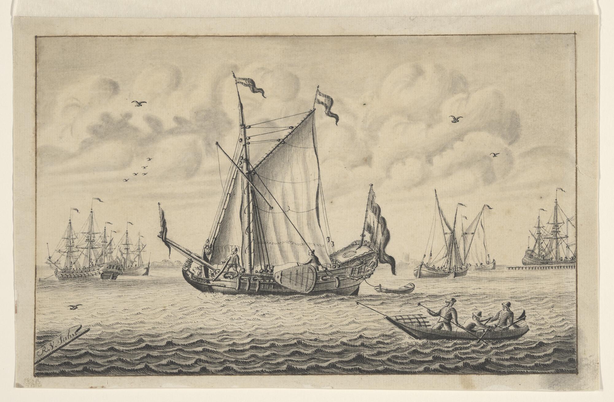 Schetsblad met diverse schepen