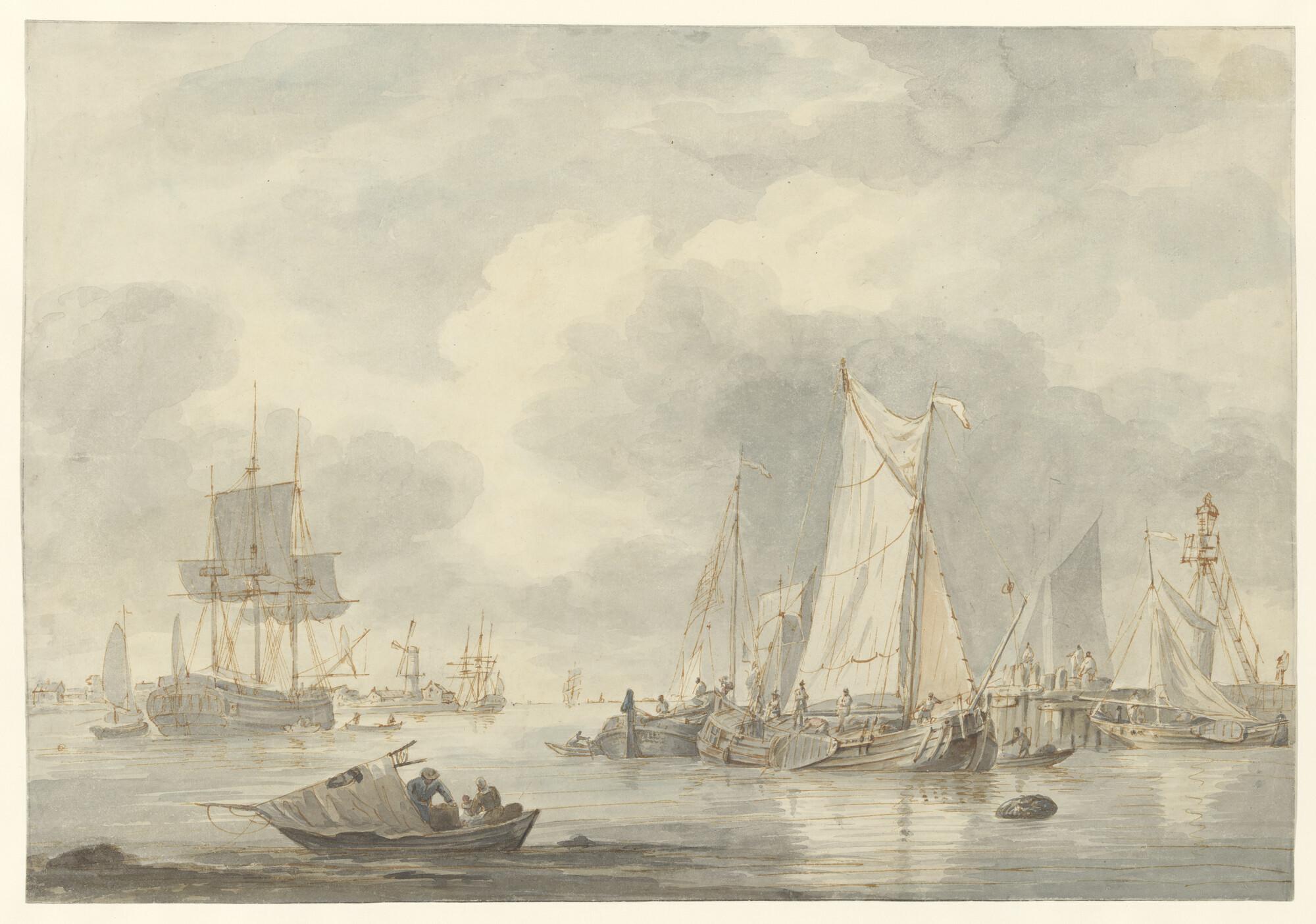 Een rede met binnen- en zeegaande schepen