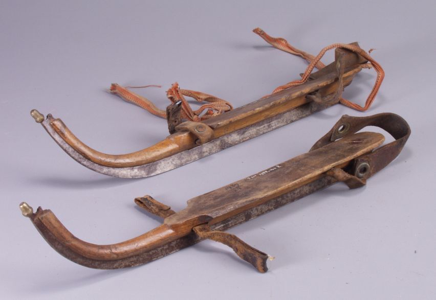 Een paar Friese schaatsen met hoge krul
