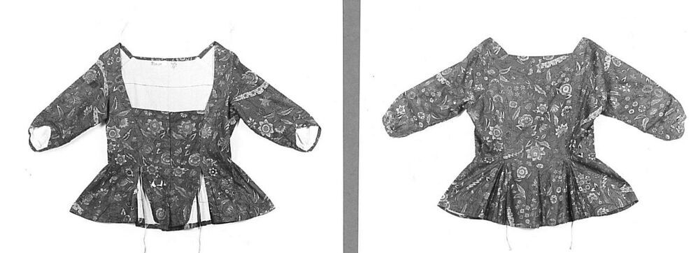 Sitsen vrouwenjak, met ingezet voorpand van afwijken...