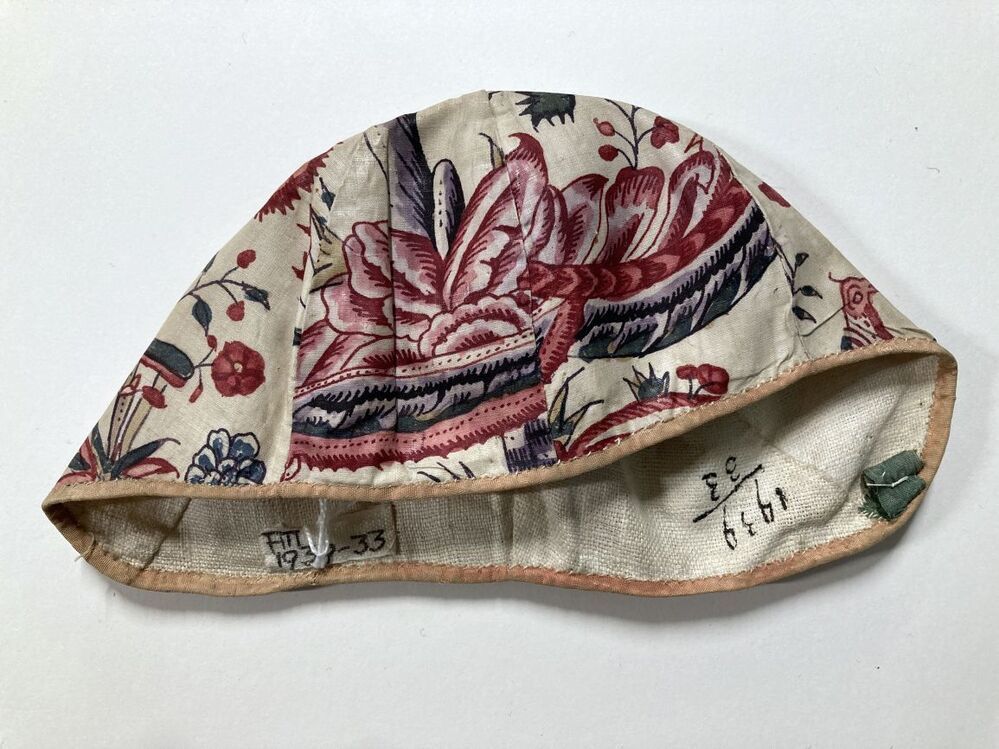 Muts van wit batist, versierd met grote bloemen in t...