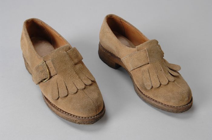 Bruine suède schoenen met omgeslagen tong die eindig...