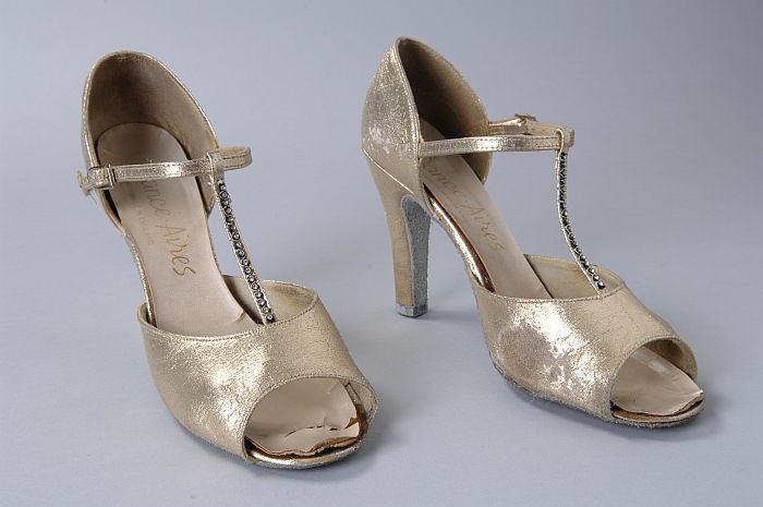 Goudkleurige dansschoenen met open teen, T-bandsluit...