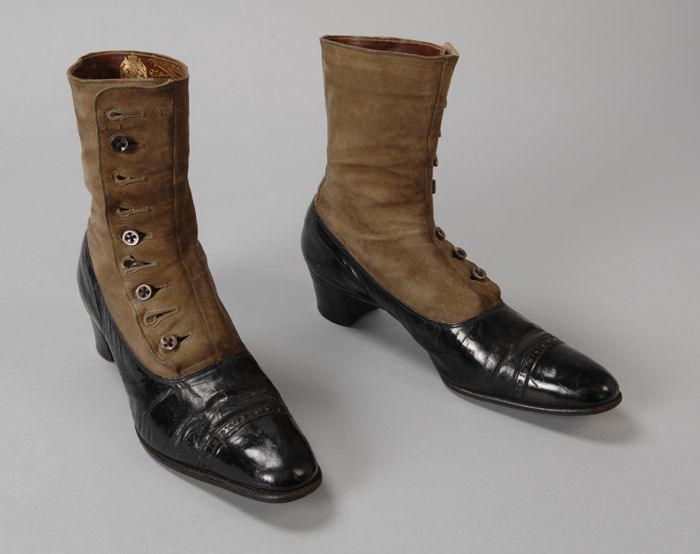 Kuithoge bottines met voet van zwart lakleer en scha...