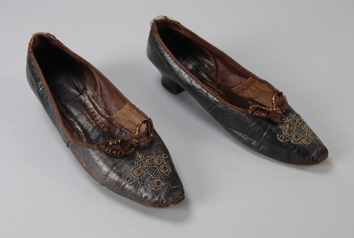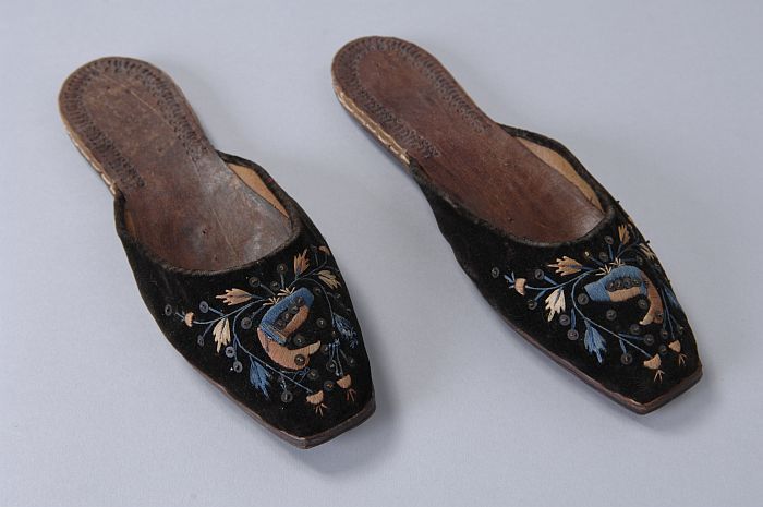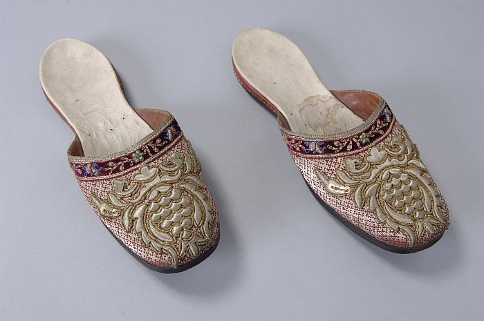 Leren slippers met geweven zilverdraad en zilverbrok...
