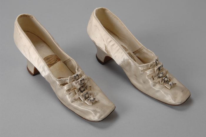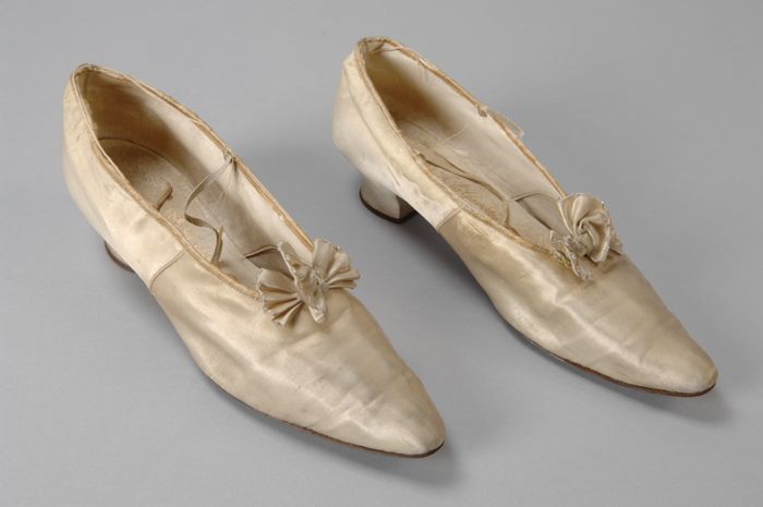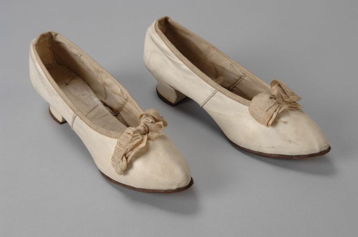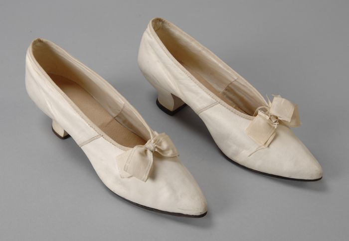 Roomwitte satijnen bruidsschoenen met klein louishakje