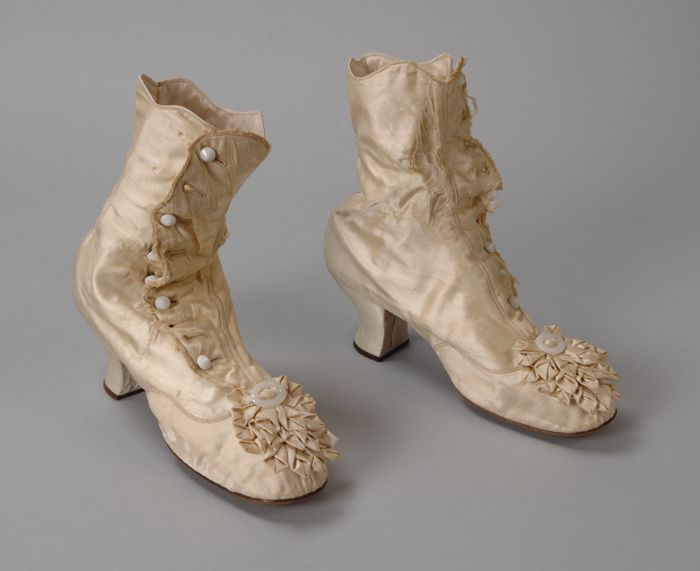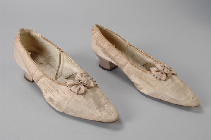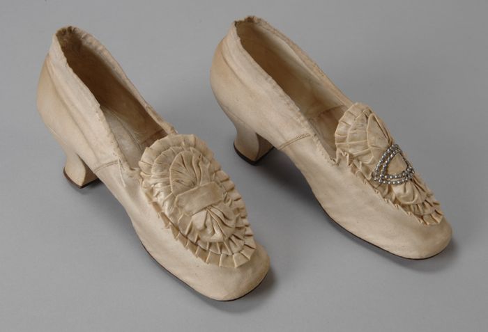 Roomwitte satijnen damesschoenen met grote geplooide...