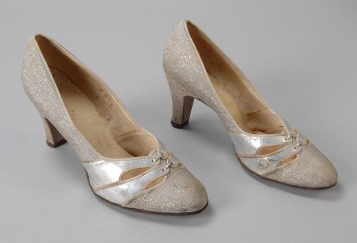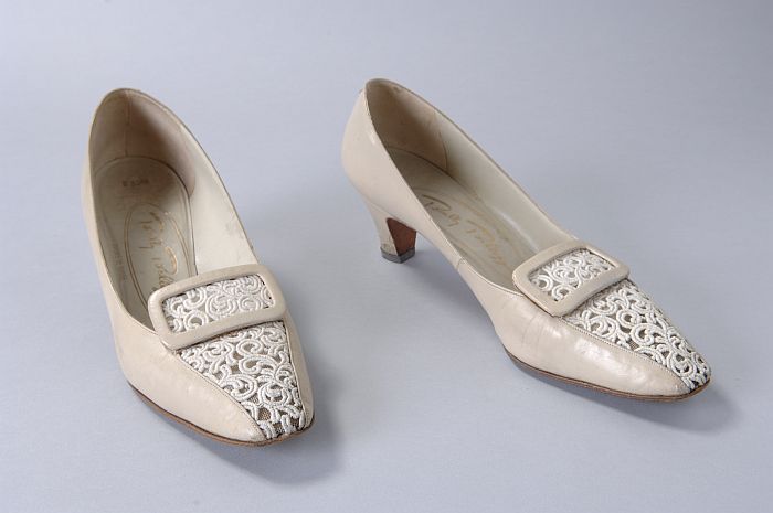 Witte satijnen bruidsschoenen met opengewerkte wreef