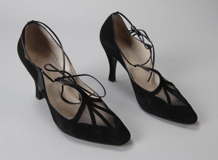 Pumps van zwart suède en zilverleer met klein hakje,...