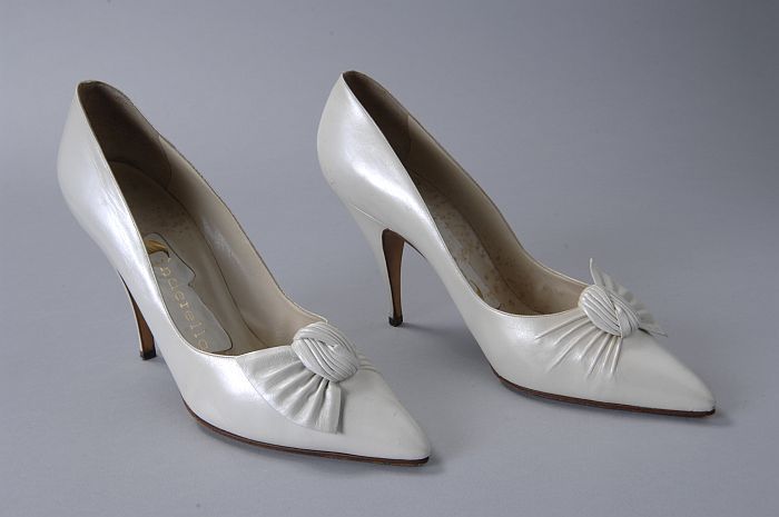 Witte leren bruidsschoenen met grote satijnen strik ...