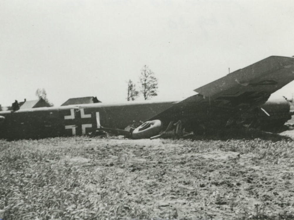 Foto neergeschoten Junkers-52 op 10 mei 1940 nabij B...