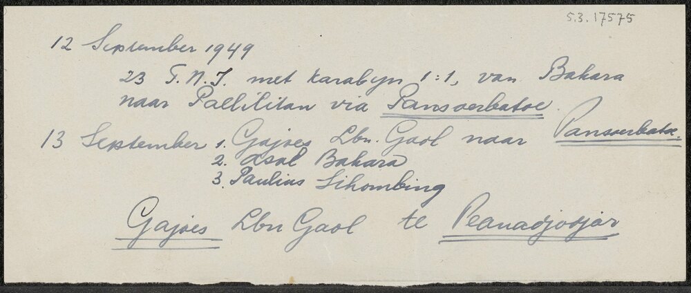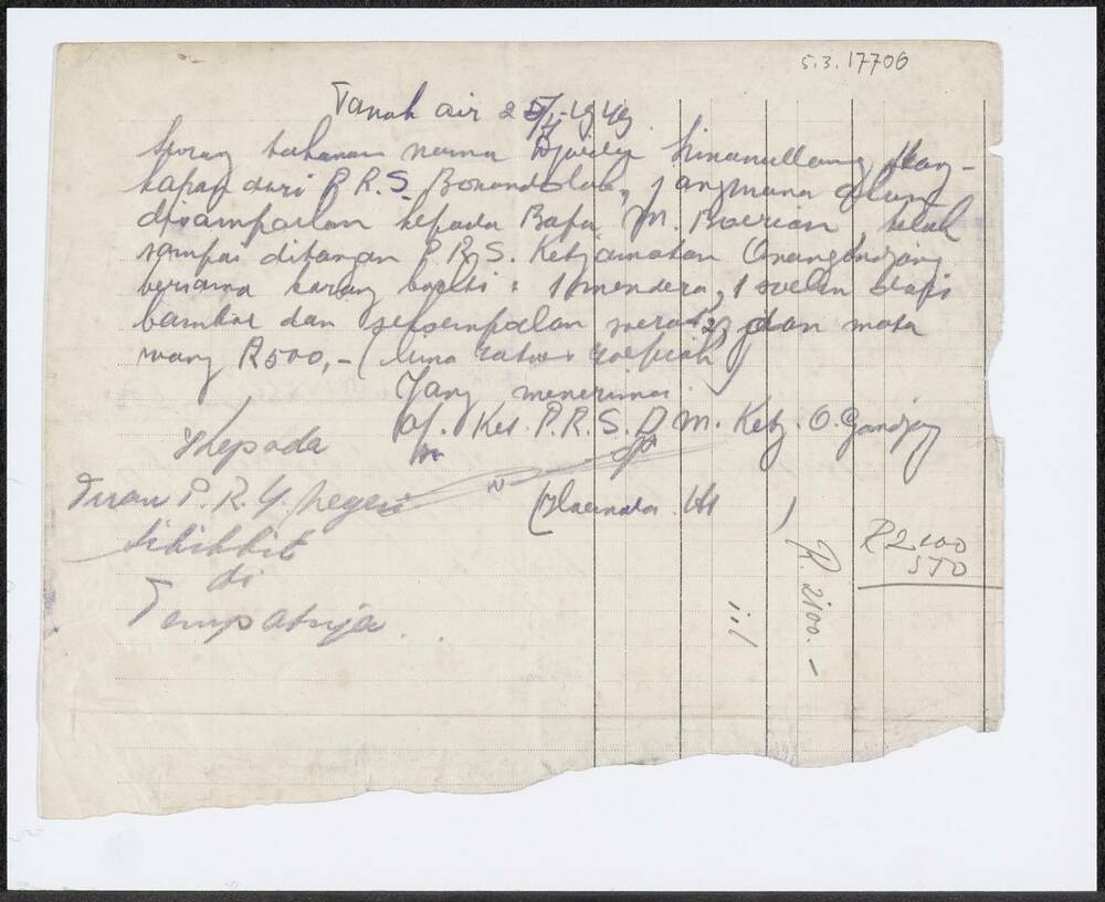 Handgeschreven briefje in het Maleis dd. 25 april 19...