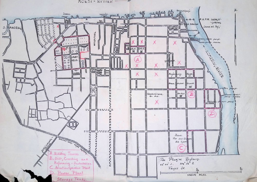 plattegrond van Pladjoe Refinery in Nederlands-Oost-...