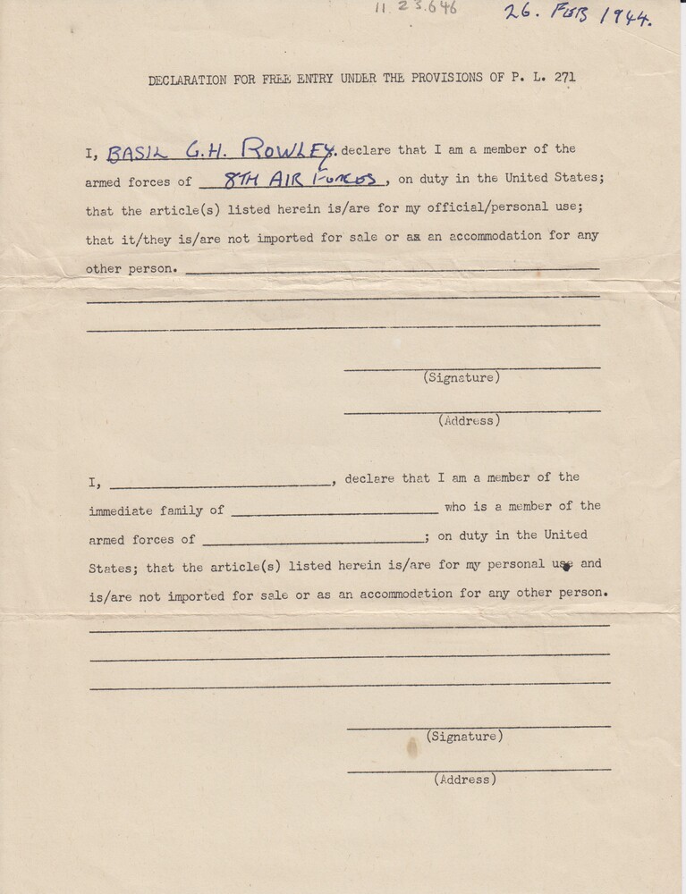 vrijgeleide G.H. Rowley, 8th SAir Force, 1944