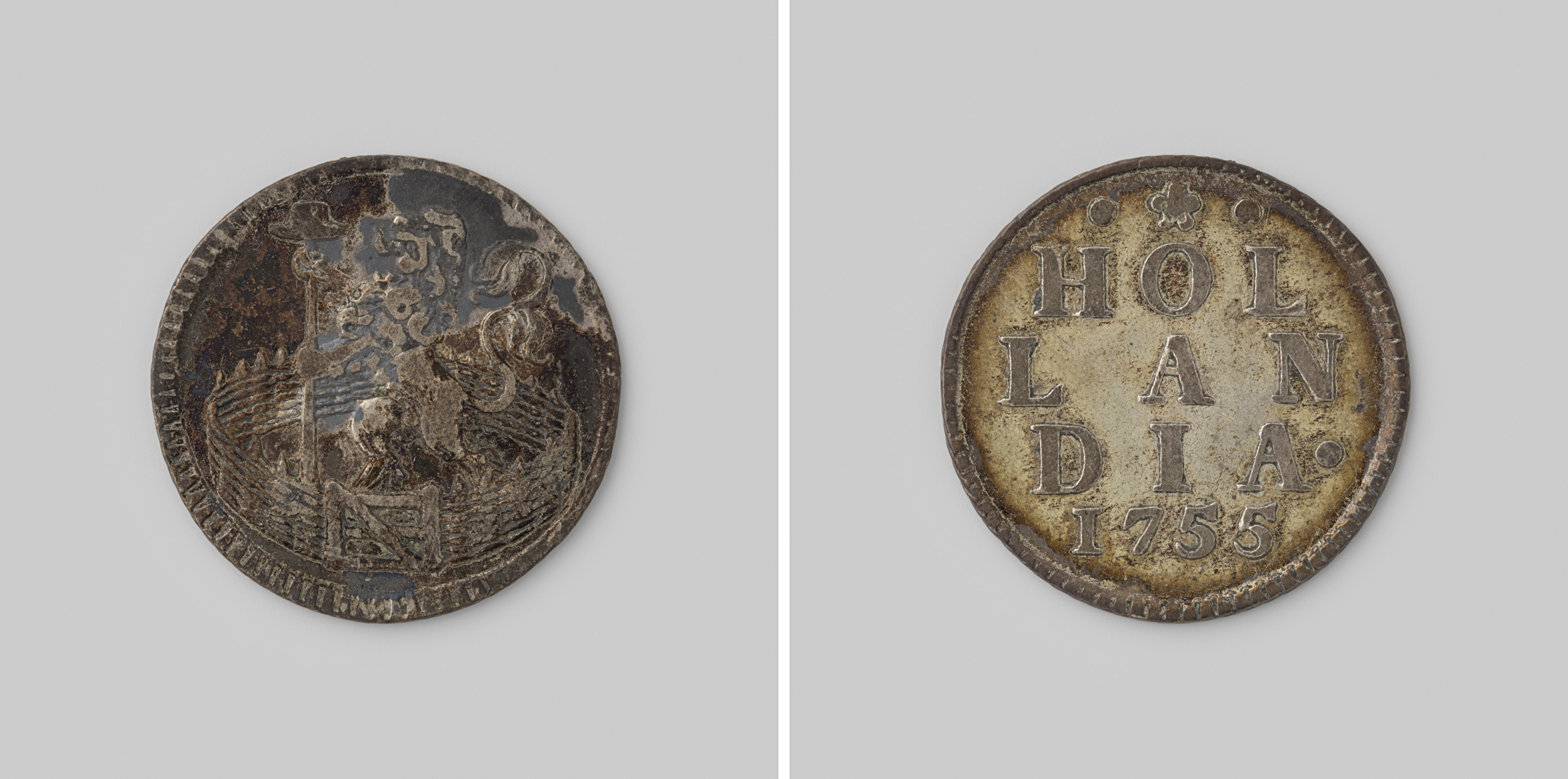 Hollandse duit, 1755. Afslag in zilver