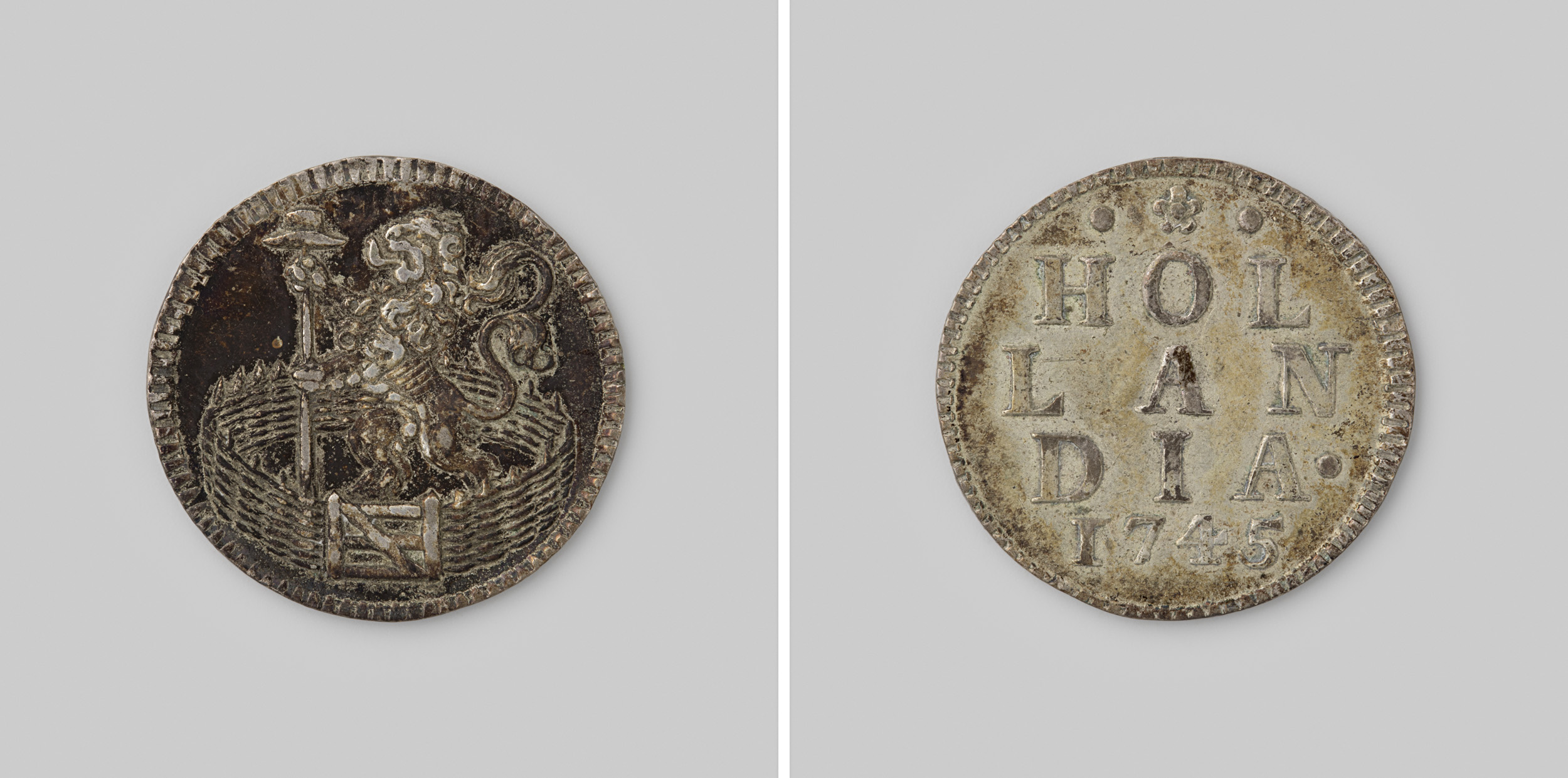 Hollandse duit, 1745. Afslag in zilver