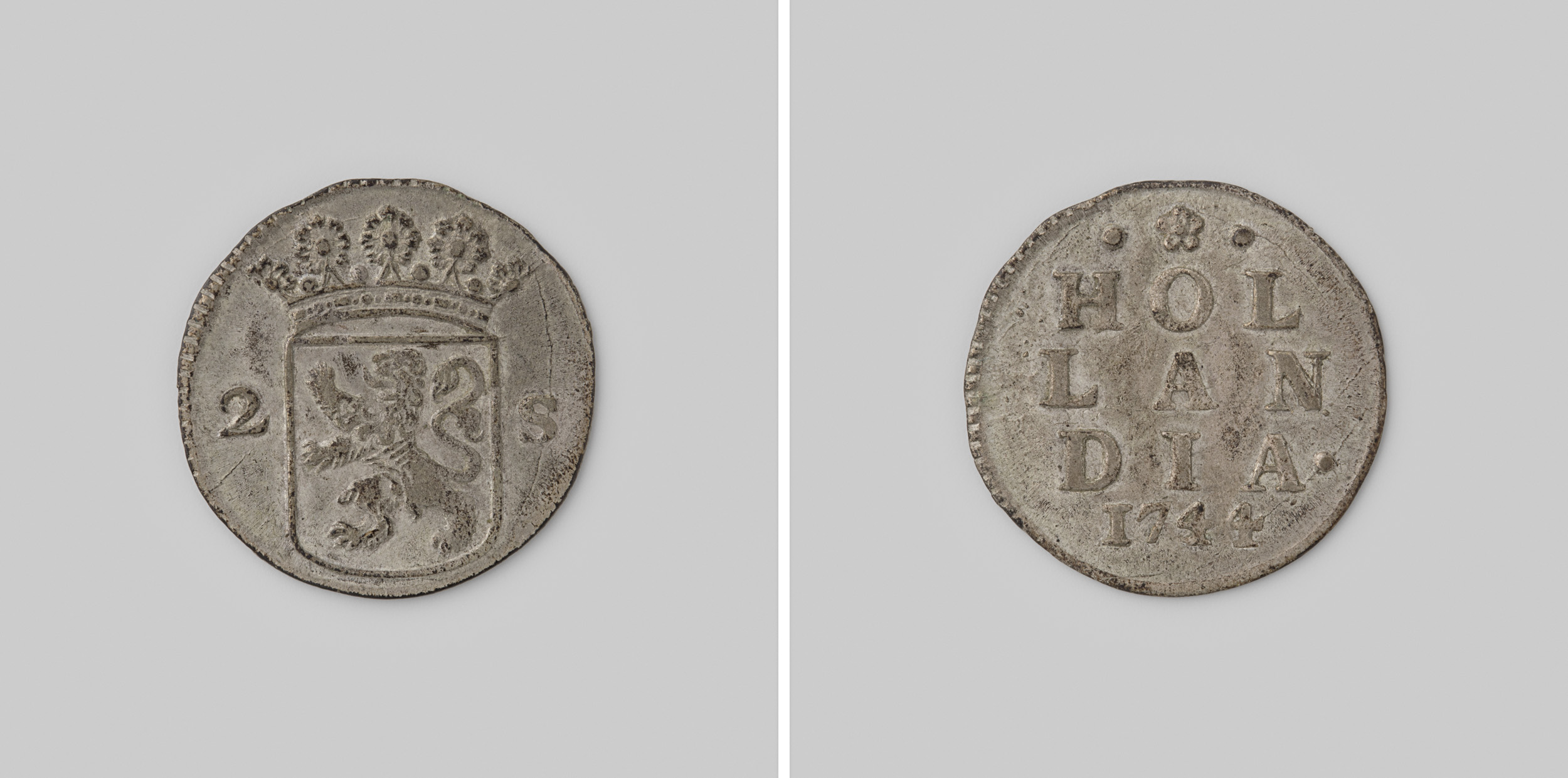 Hollandse duit, 1744. Afslag in zilver