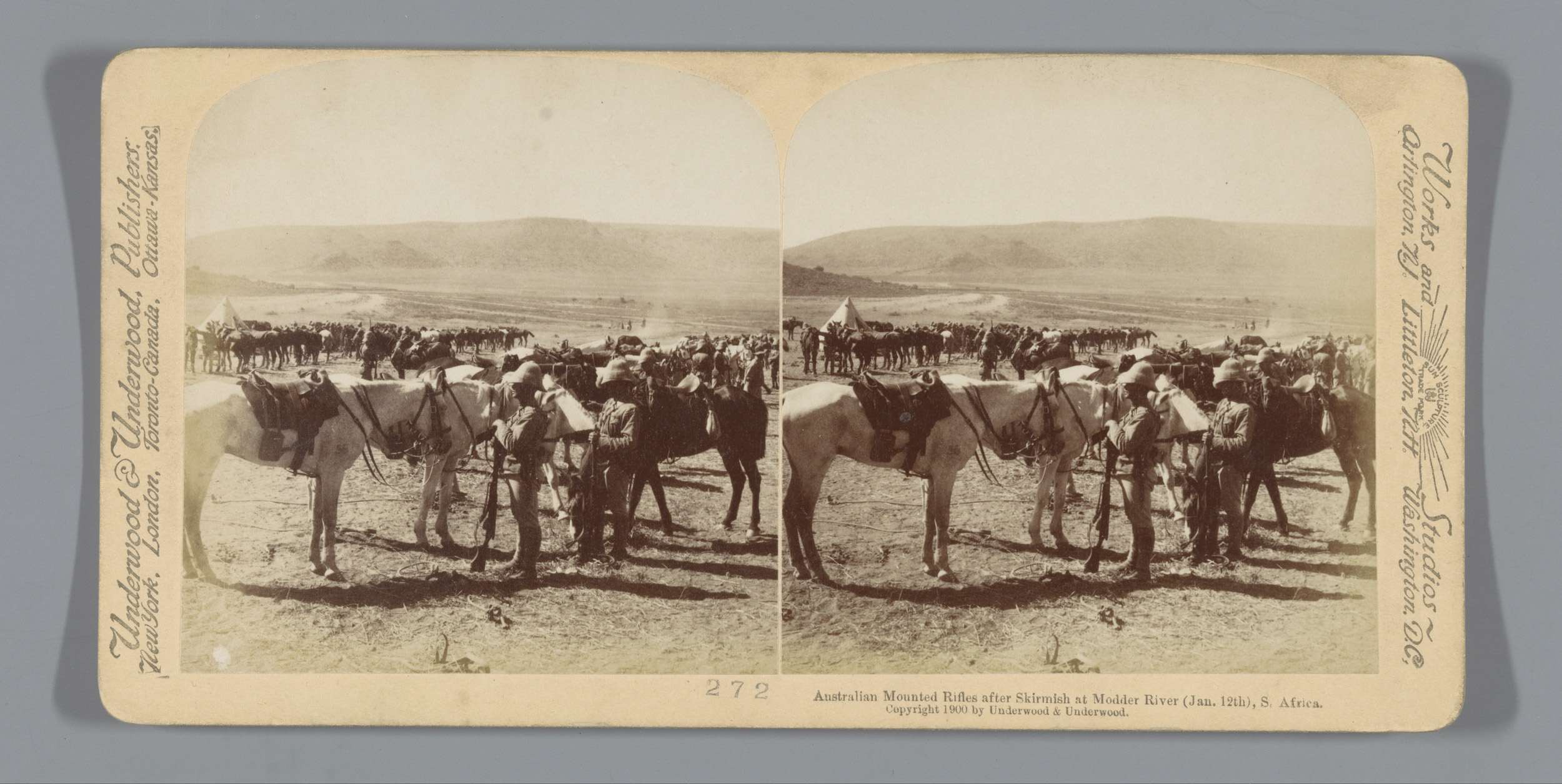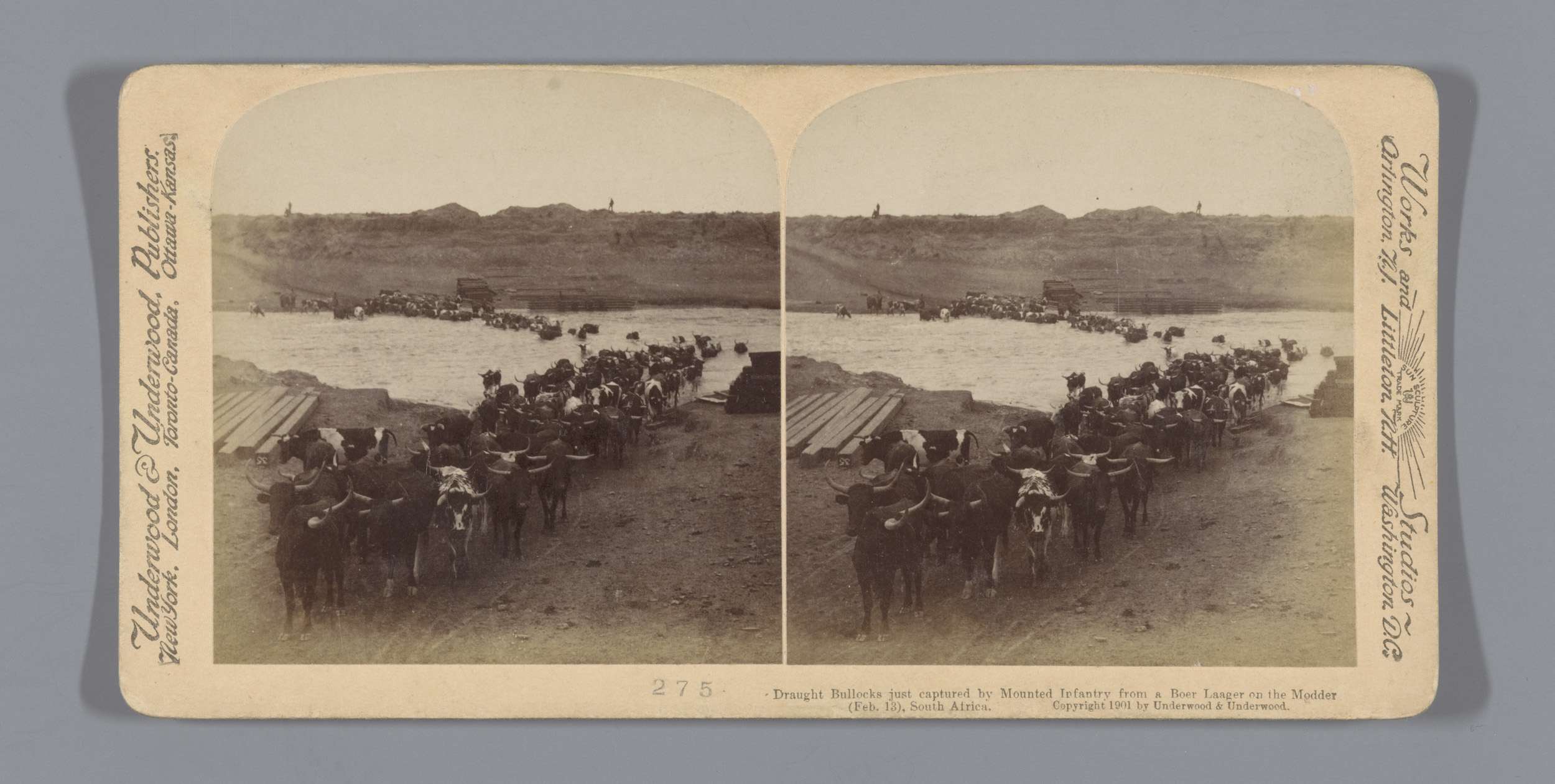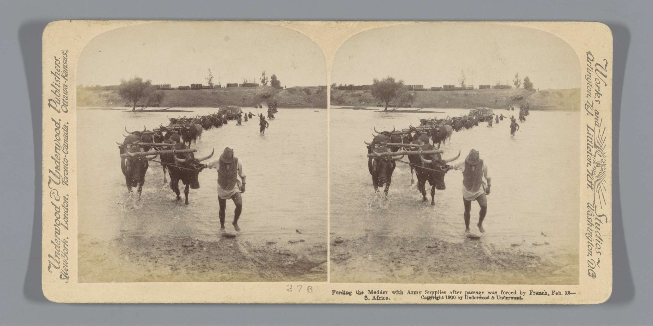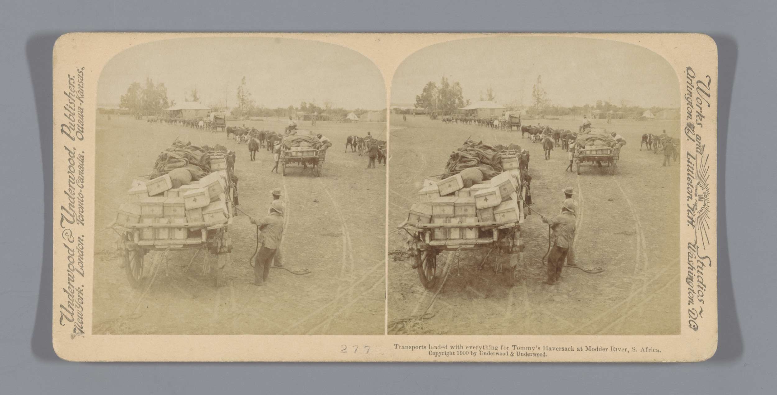 Wagens met Britse legervoorraden bij de Modderrivier...
