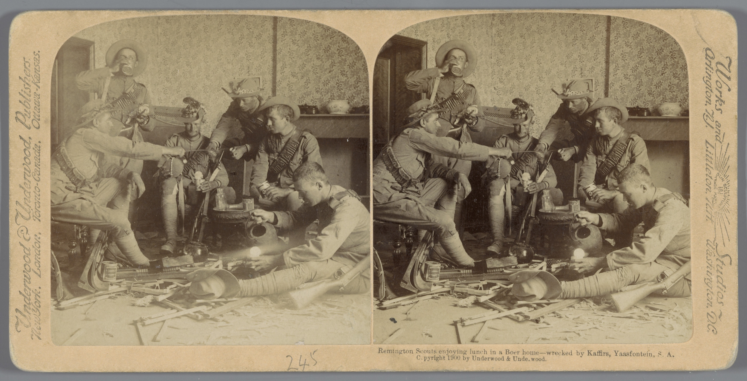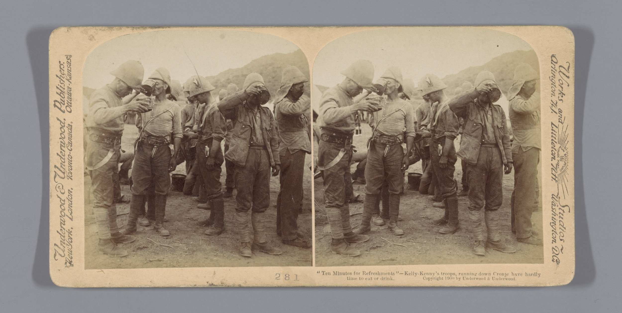 Britse militairen drinken tijdens de slag van Paarde...