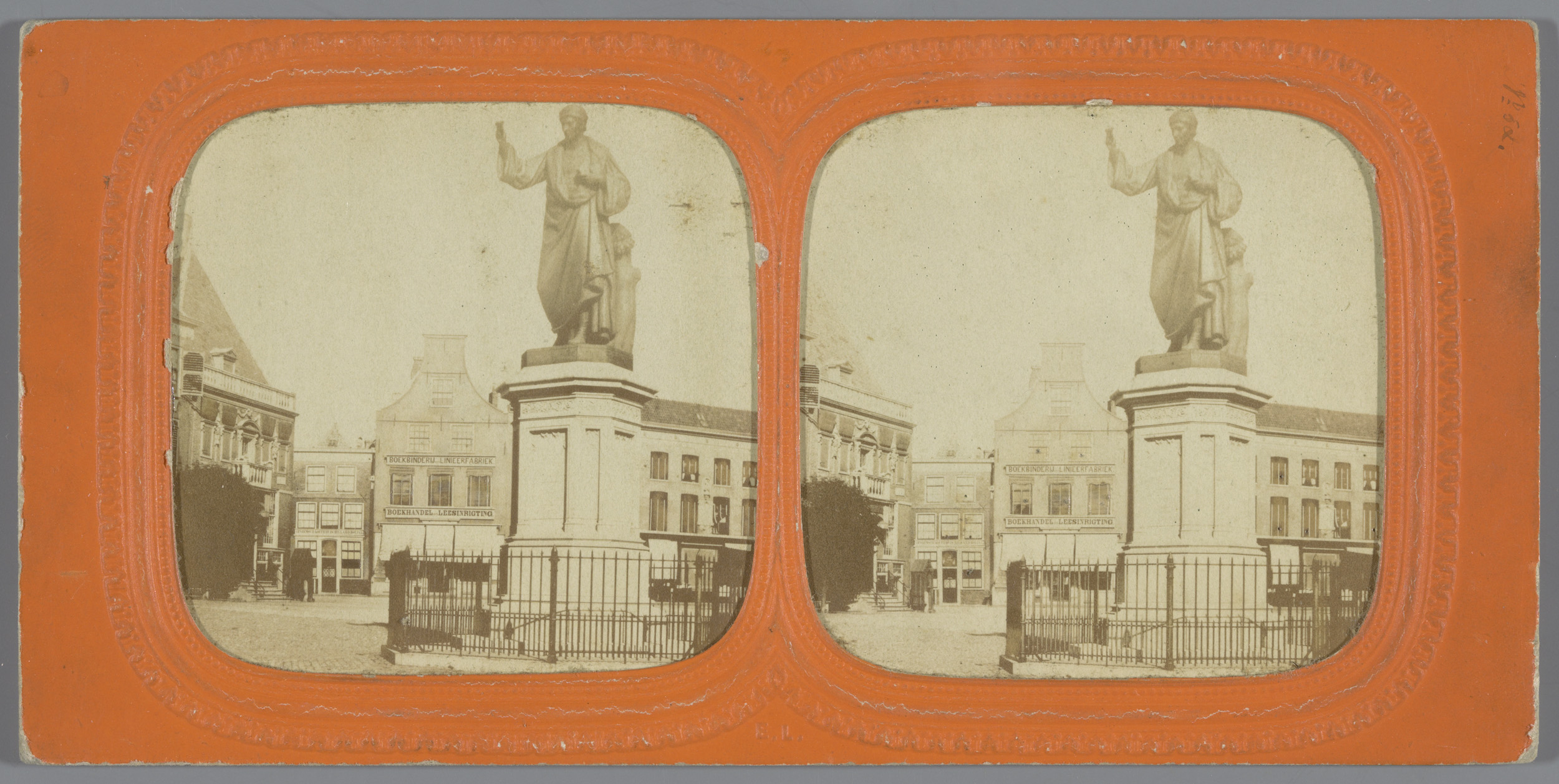 Gezicht op het standbeeld van Laurens Janszoon Coste...