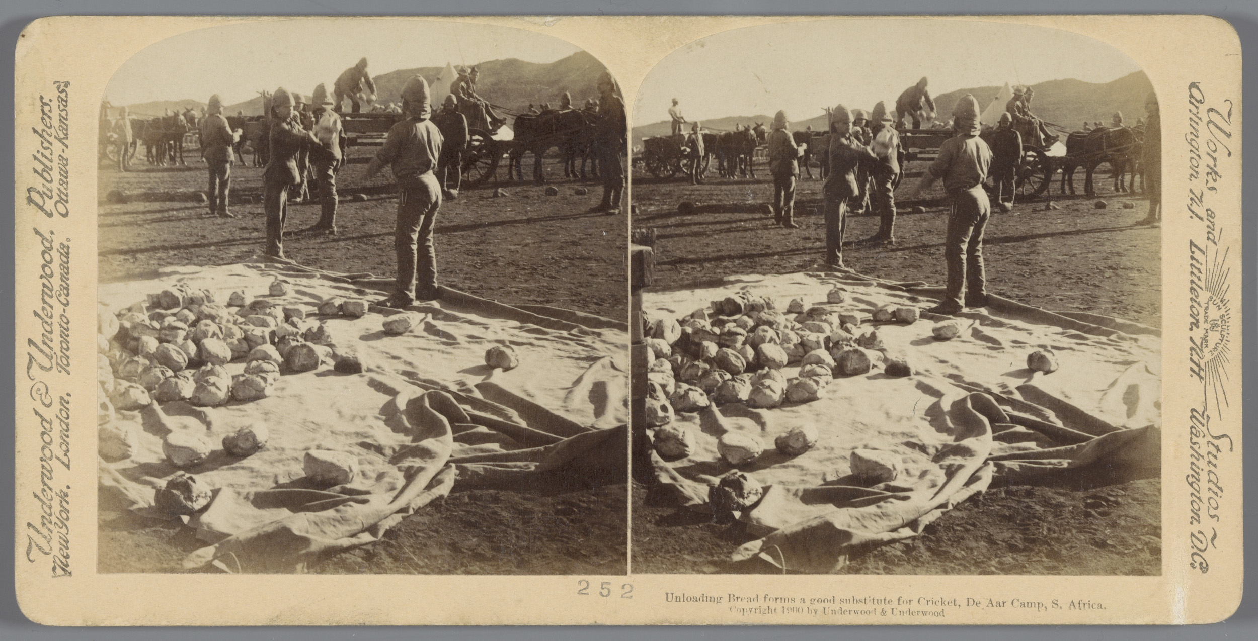Britse soldaten laden in het kamp bij De Aar brood v...