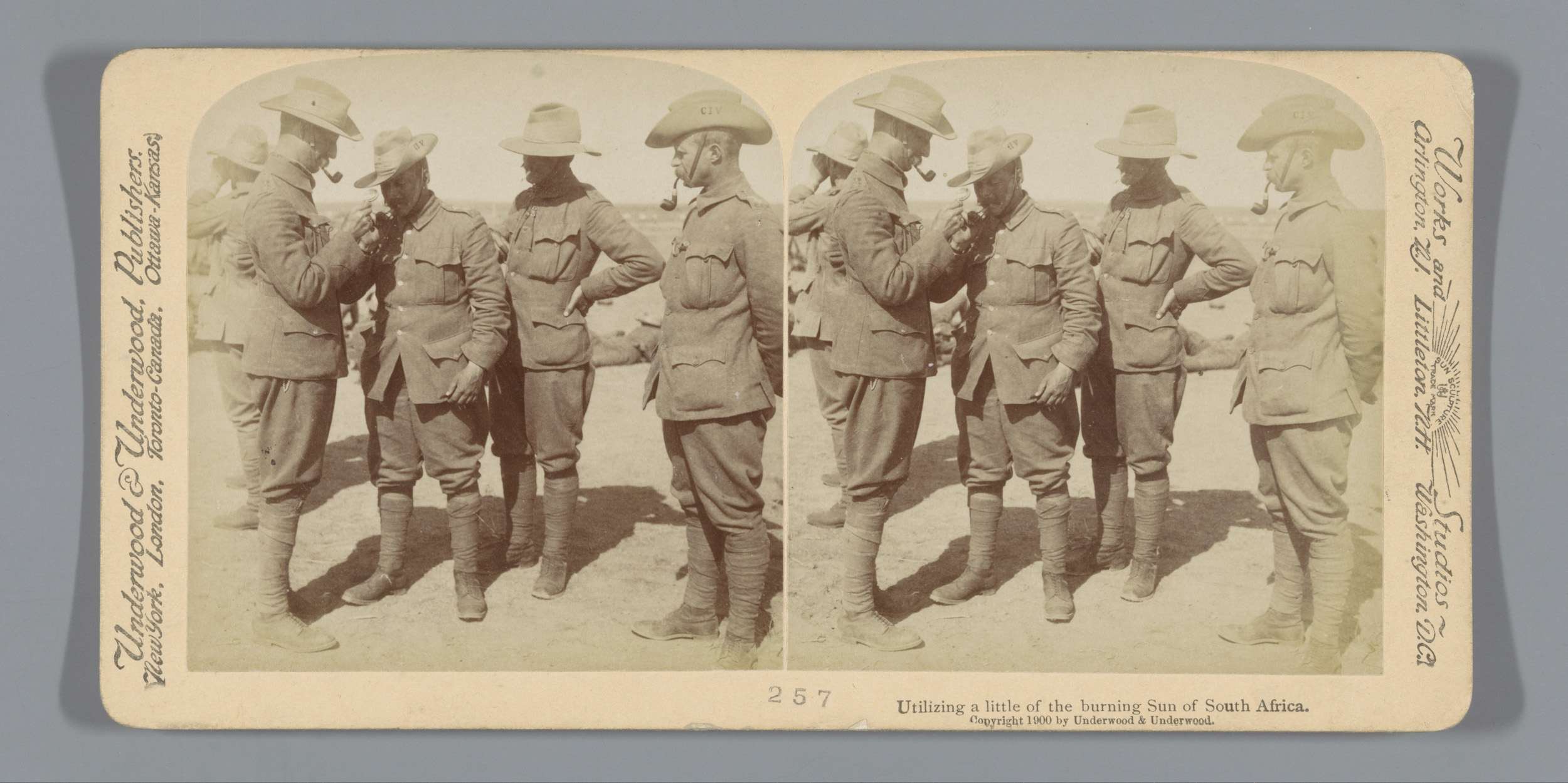 Britse militairen steken een pijp aan met behulp van...