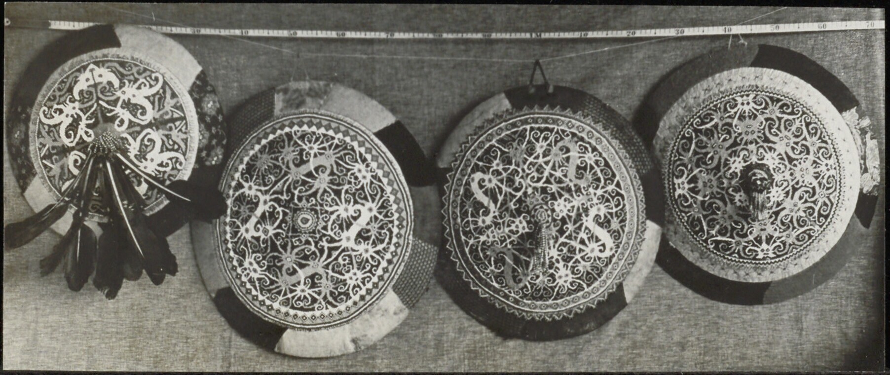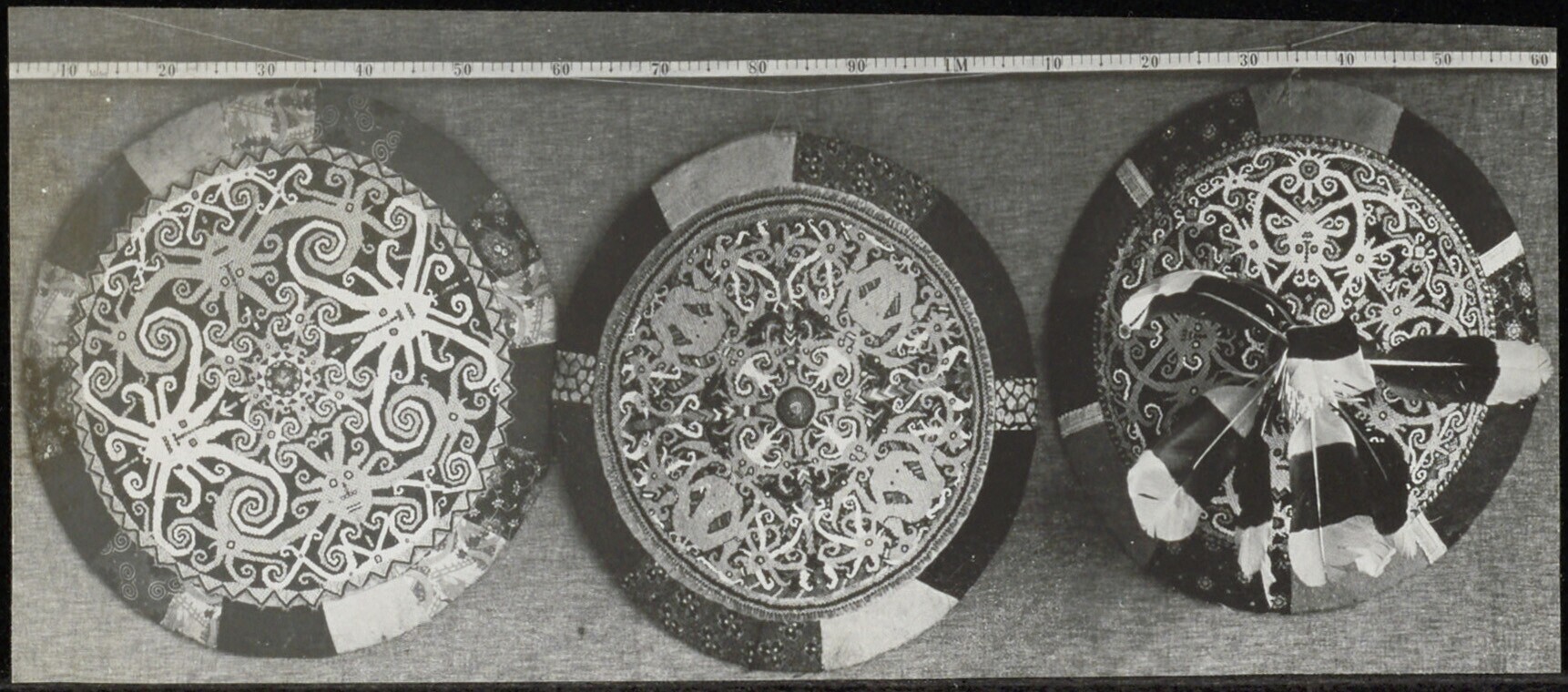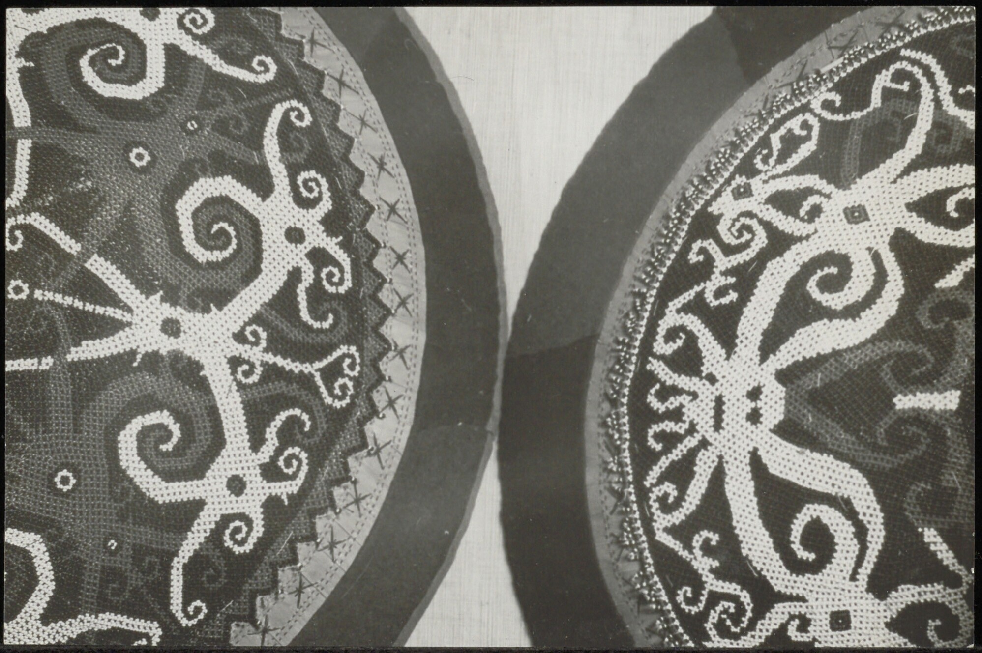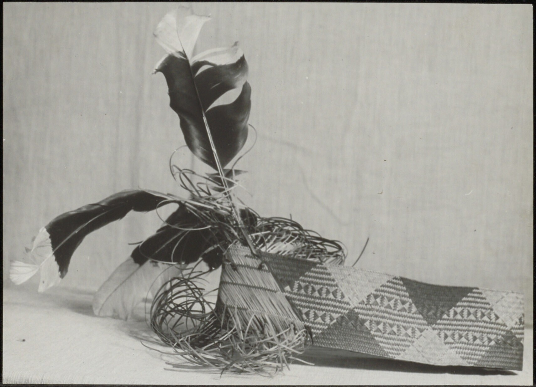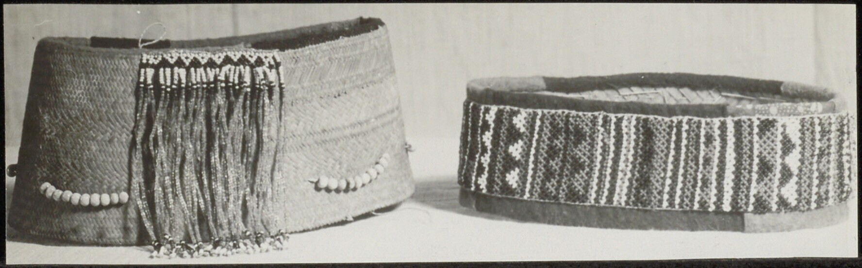 Twee hoofddeksels of hoofdbanden van vlechtwerk, eni...