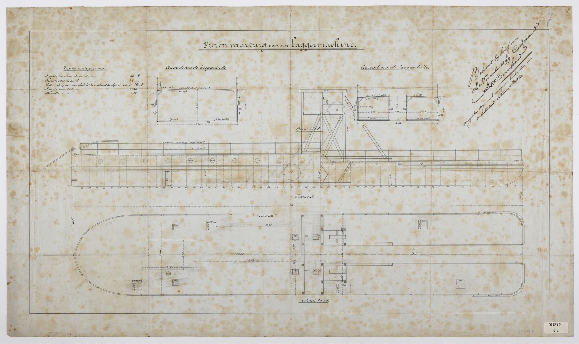 Dwarsdoorsnede en spantenraam van een stoomjacht met...