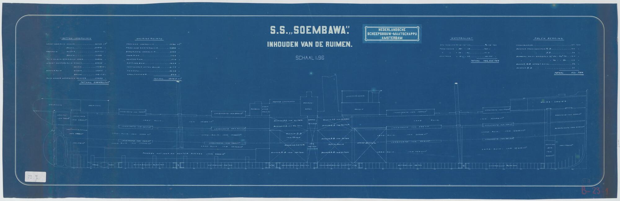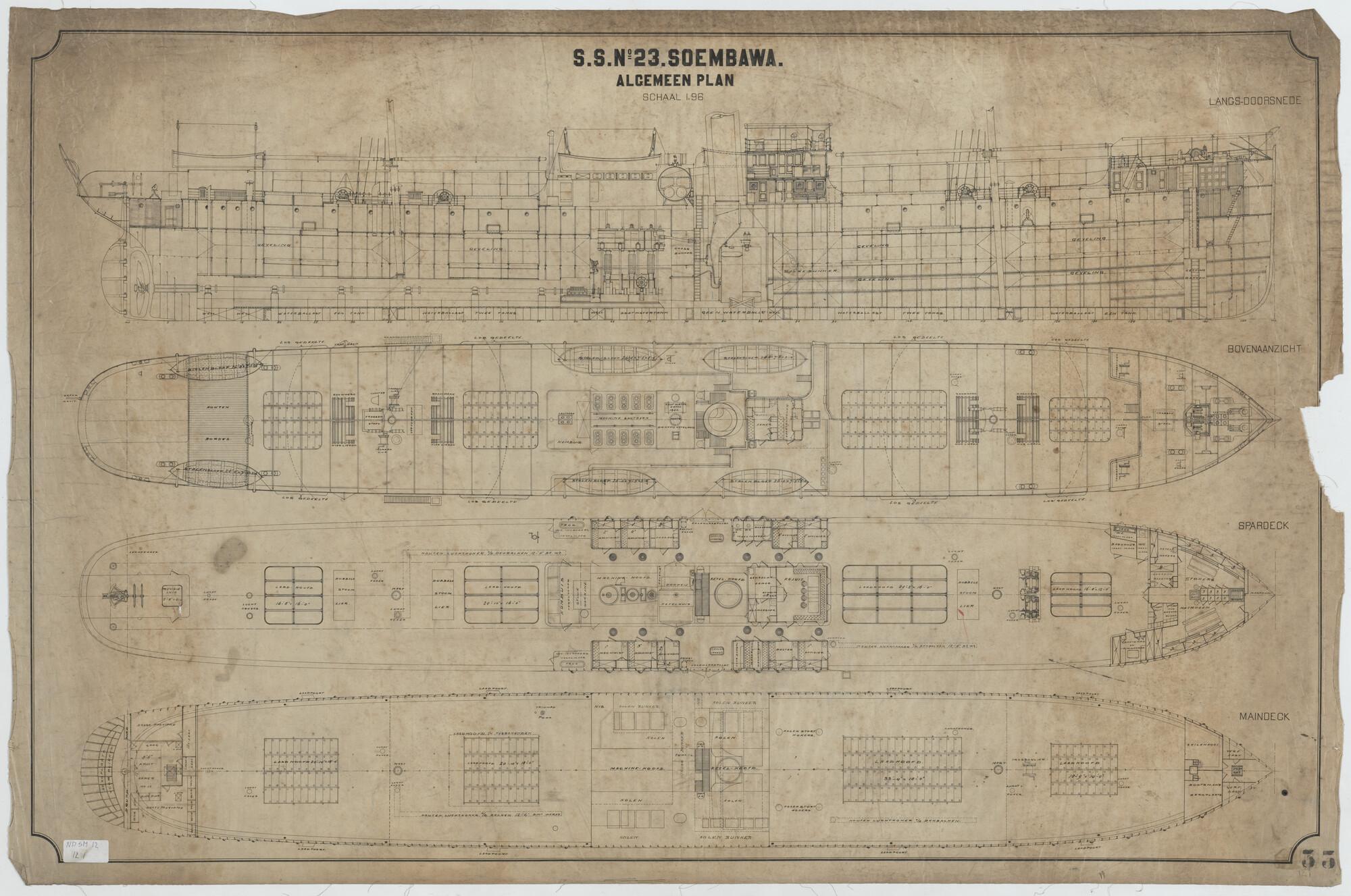 Langsdoorsnede van het vrachtschip ss. Soembawa van ...