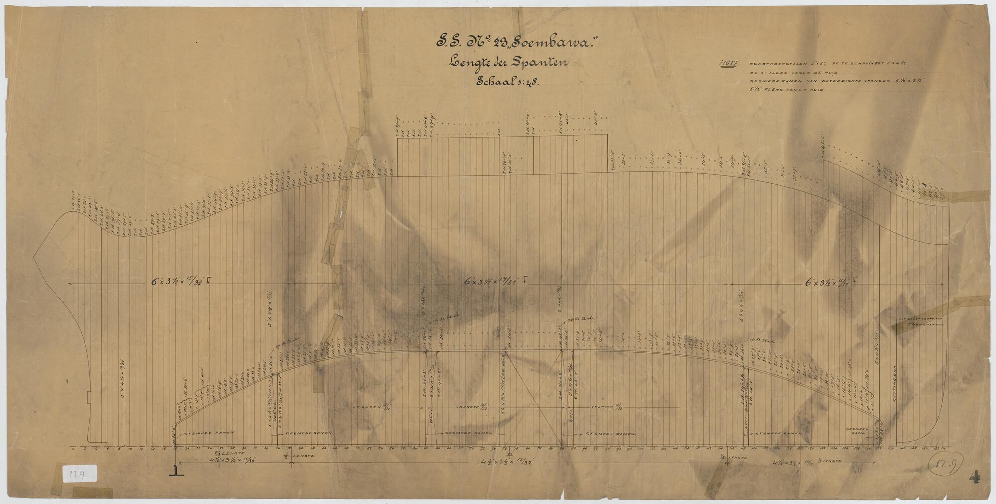 Lengte der spanten van het vrachtschip ss. Soembawa ...