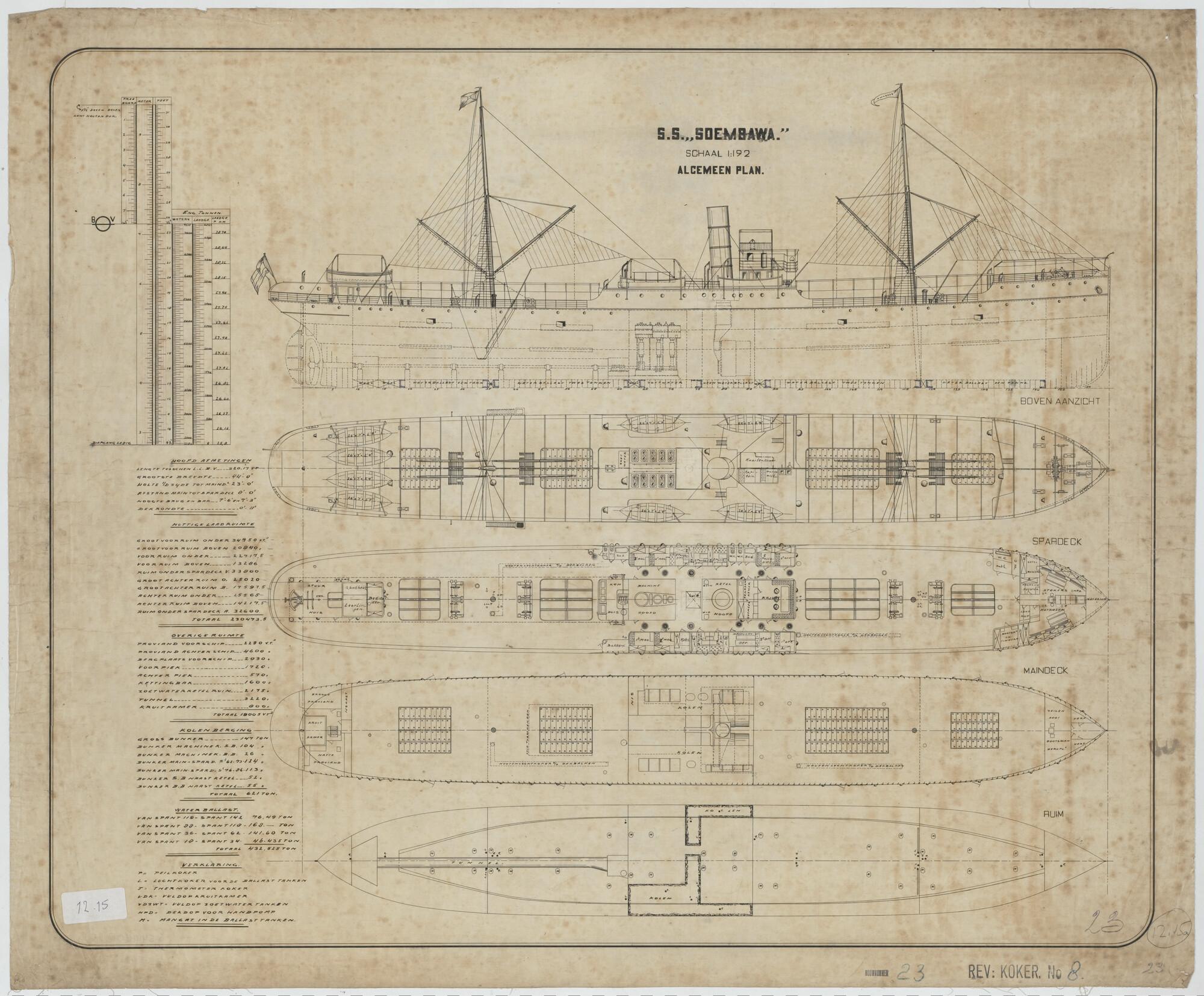Tuigplan van het vrachtschip ss. Soembawa van de SMN