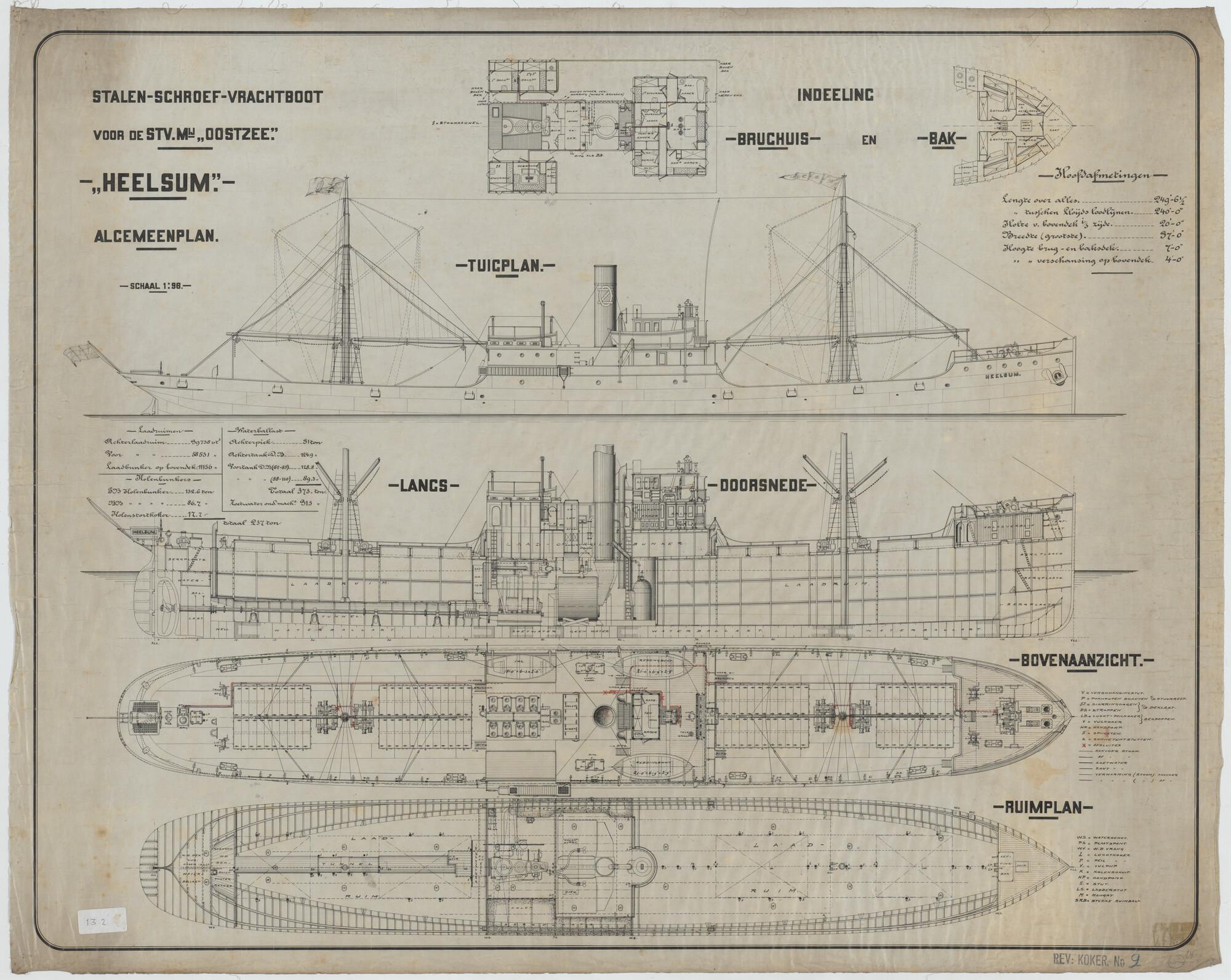 Algemeen plan van het vrachtschip ss. Heelsum van de...