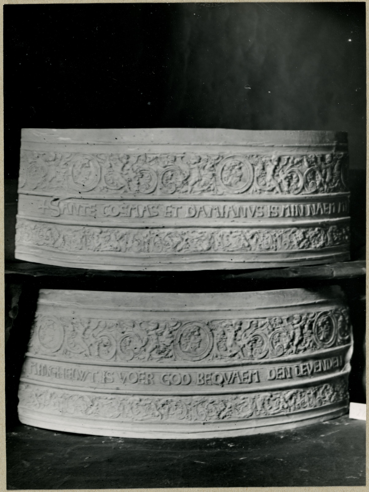 Gipsfoto van twee verschillende klokken: Het bovenst...