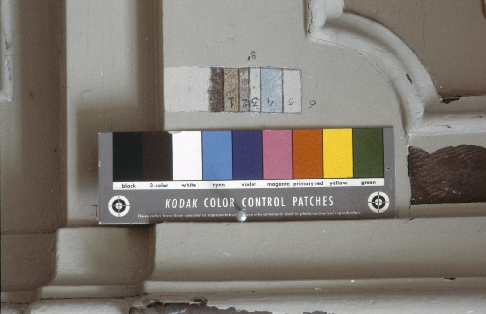 Interieur, tuinkamer,kleuronderzoek,proefstrook