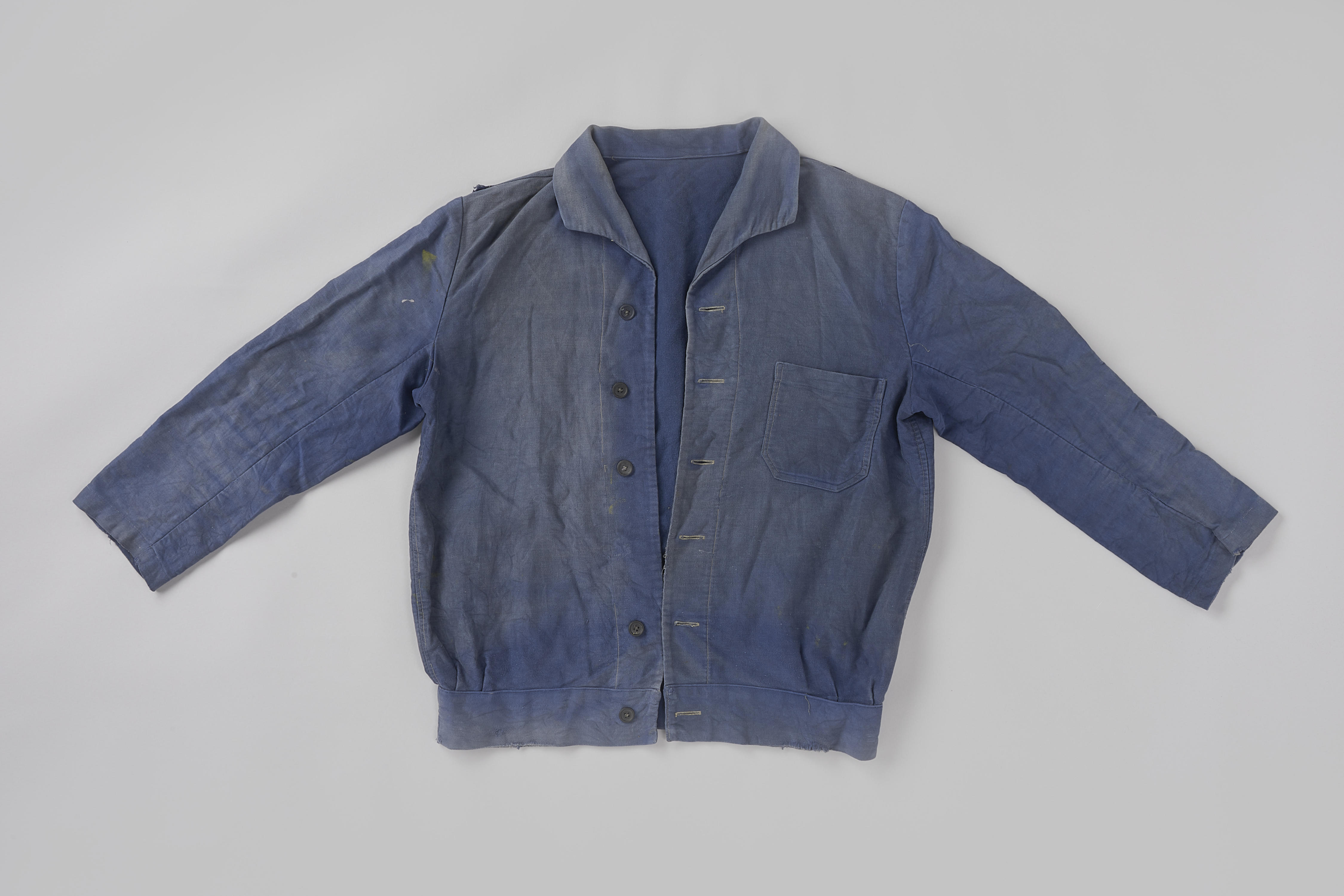 Korte mannenjas van Jan Eisberg voor in het werk, Pi...