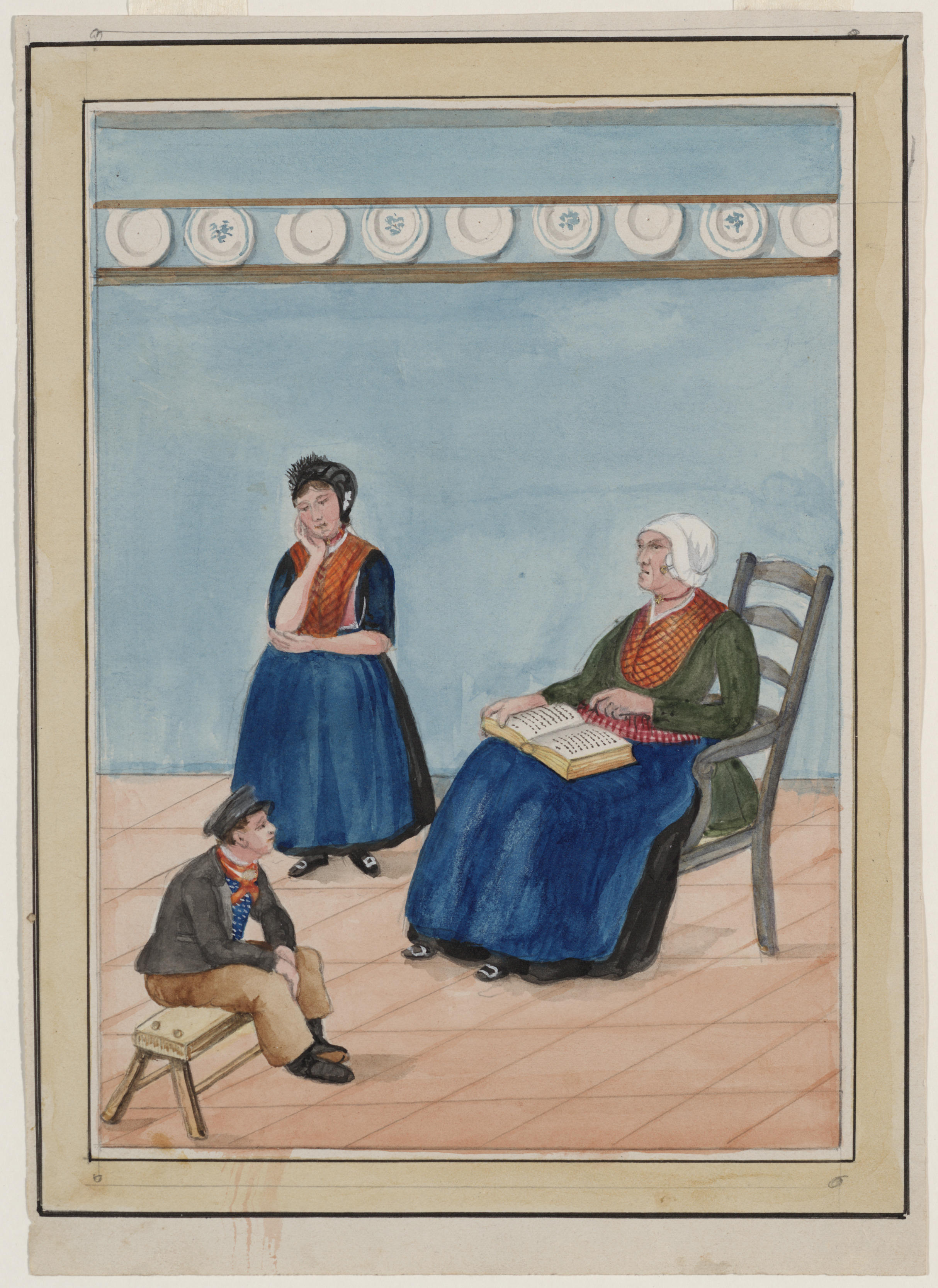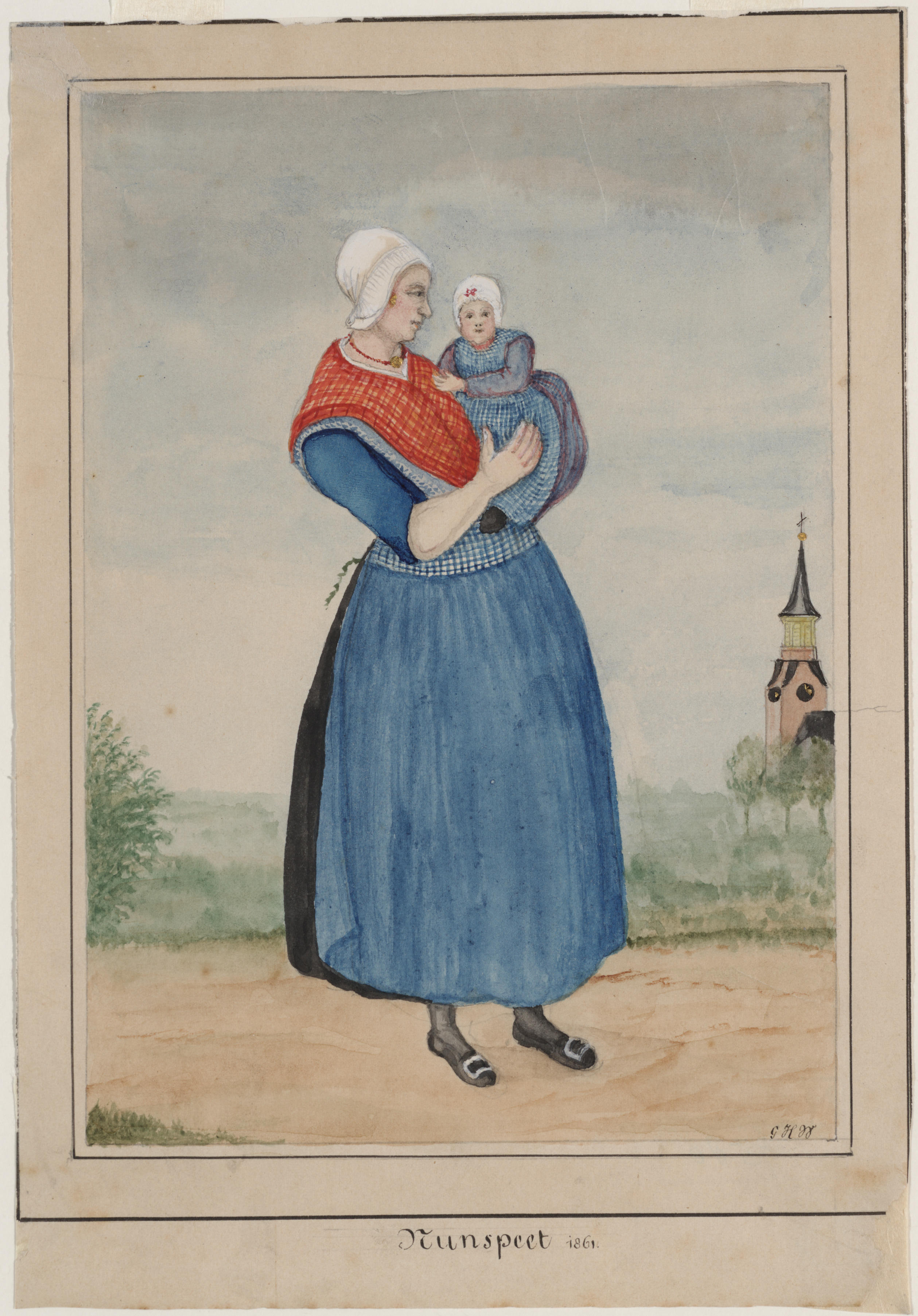 Vrouw met jongen en meisje in dracht, Noord-Veluwe