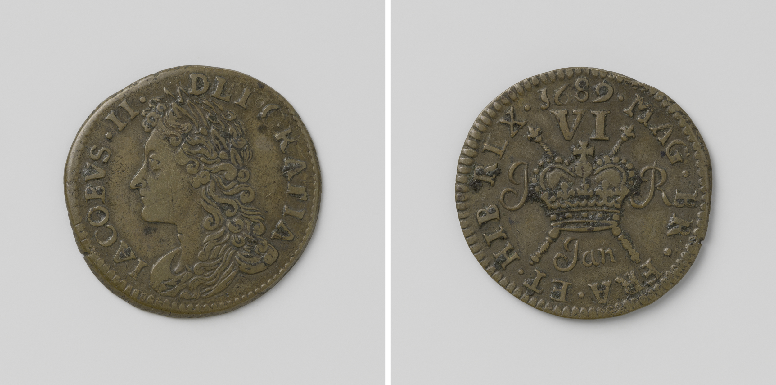 Zes pence, noodmunt van Jacobus II, koning van Engel...