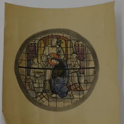 Ontwerp voor een rond glas-in-loodraam met Doopsel v...