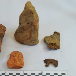 Fragmenten van baksteen, ijzer en ijzerslak