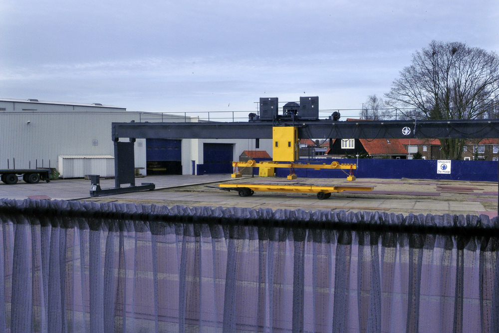 Digitale kleurenfoto van het werfterrein vanuit een ...
