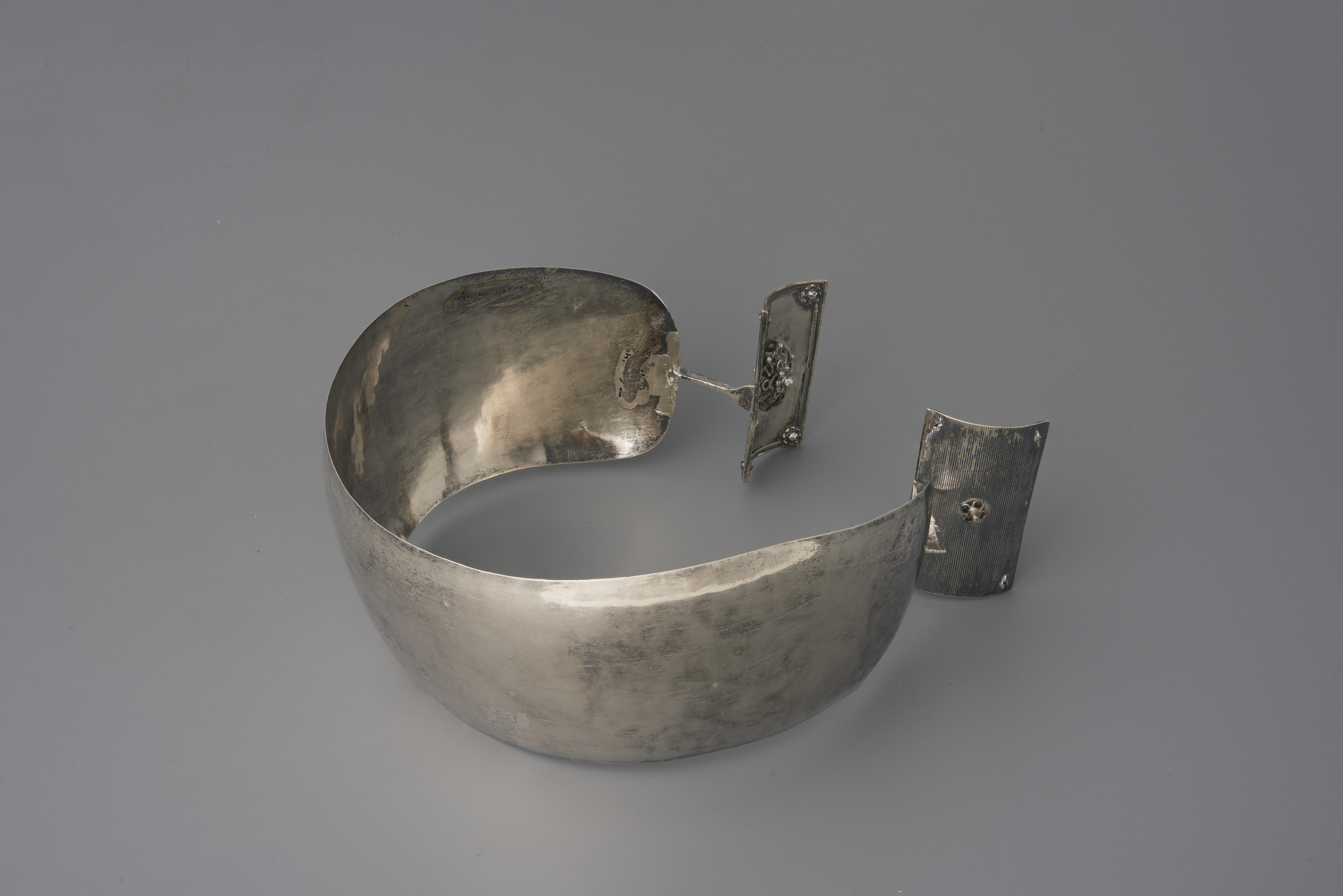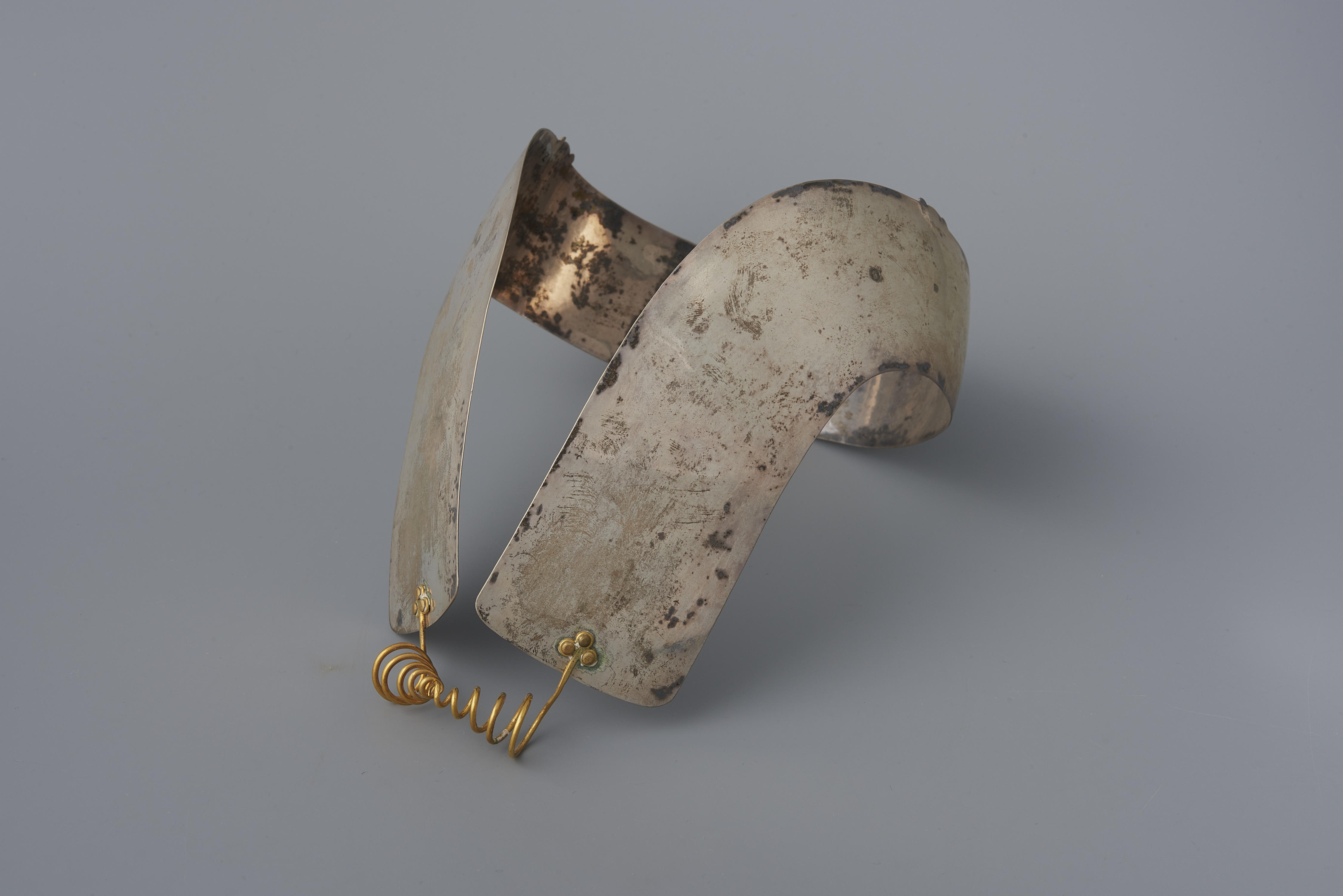 Zilveren oorijzer met koperen krullen, Noordwest-Vel...