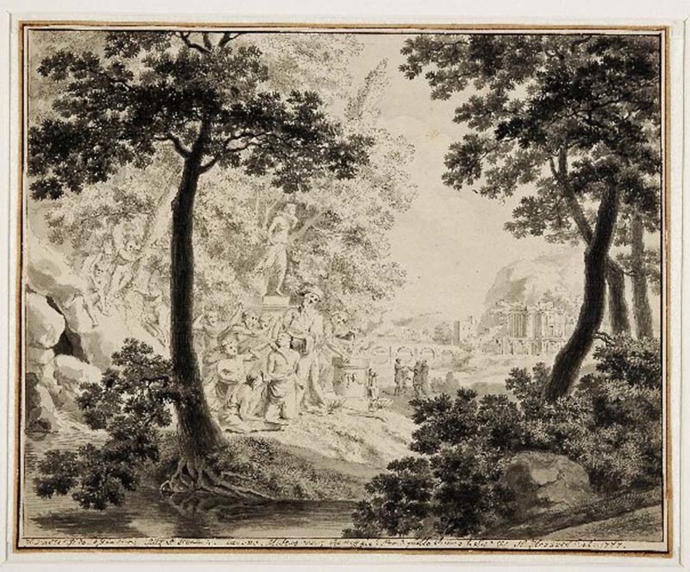 Landschap met toneelscene uit 'Il pastor fido' van G...